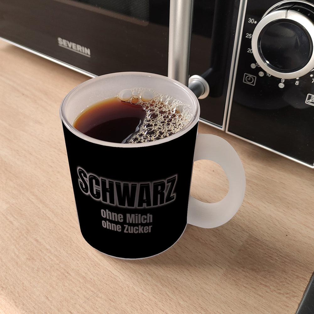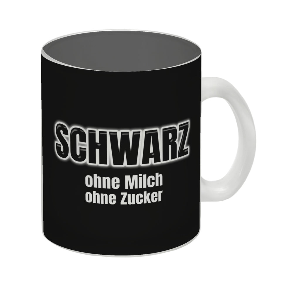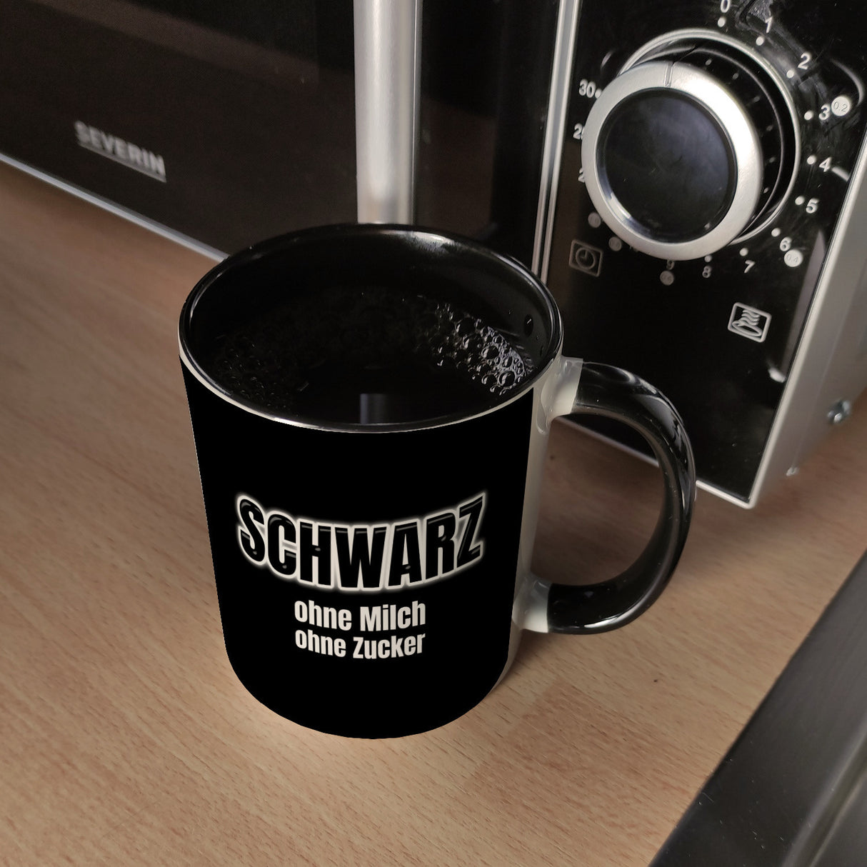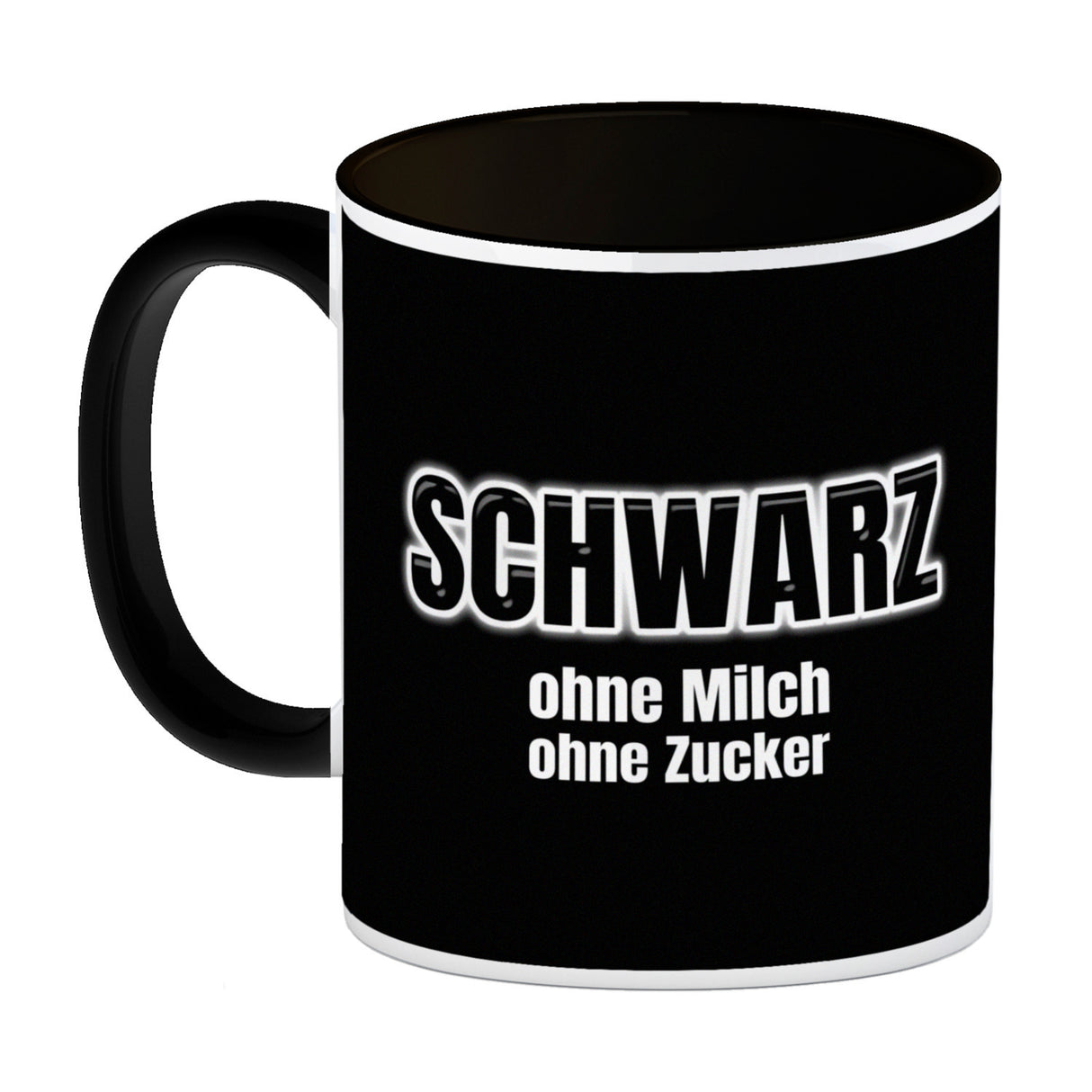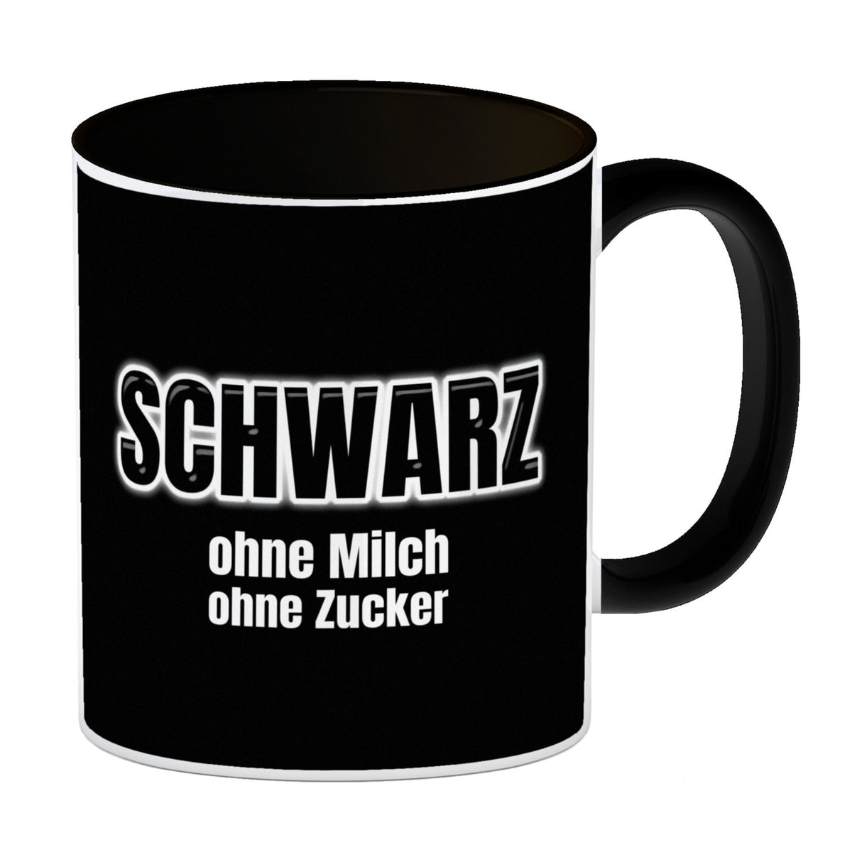 Kaffeebecher mit Spruch SCHWARZ ohne Milch ohne Zucker für Koffeinjunkies