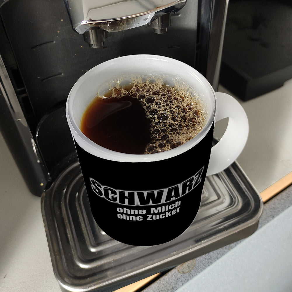 - Bist du es auch satt, dass deine Kollegen im Büro dich immer danach fragen was in deinen Kaffee mit rein darf? Natürlich nichts, außer Kaffee, also SCHWARZ! So wie man Kaffee eben trinkt.