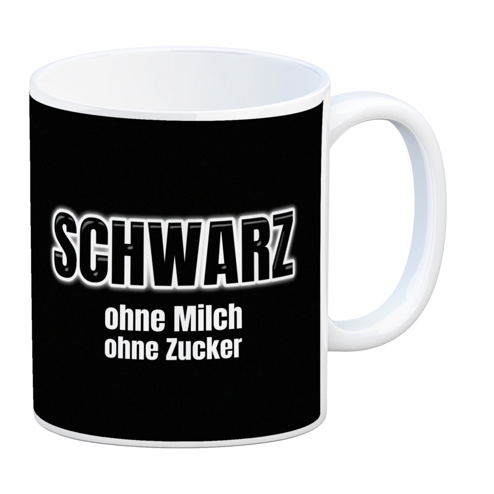 - 1x Kaffeebecher mit Spruch SCHWARZ ohne Milch ohne Zucker für Koffeinjunkies in der gewählten Ausführung