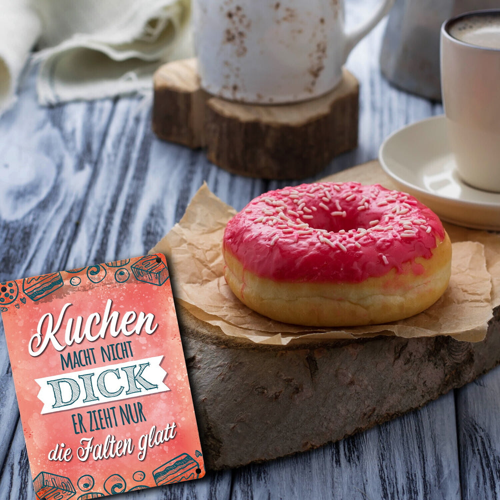 • 1x Kuchen macht nicht dick Metallschild mit lustigem Spruch in der gewählten Größe