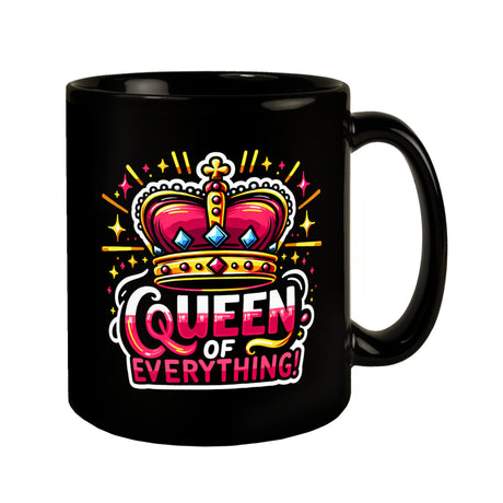 Krone einer Königin Tasse in Schwarz mit Spruch Queen of everything
