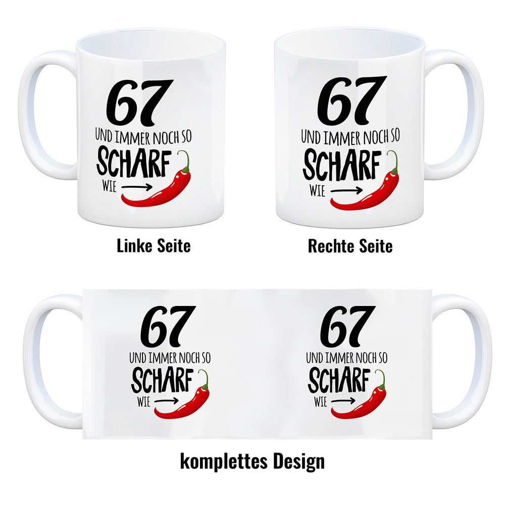 - Lieferumfang: 1x Geburtstags Kaffeebecher - 67 und immer noch so scharf wie Chili