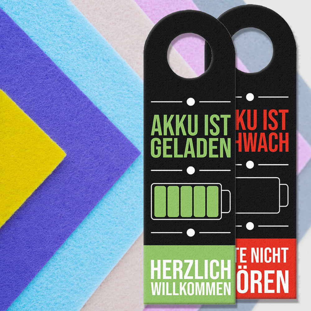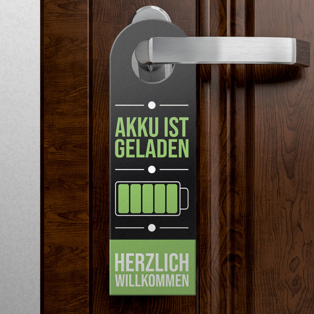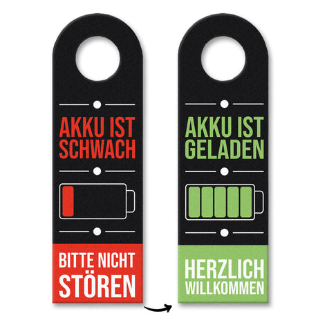 - Wenn du in deinem Bett den Akku wieder aufladen musst, dann lass dich dabei nicht stören und zeige es deiner Familie oder den Mitbewohnern mit diesem Türhänger mit Wendemotiv.