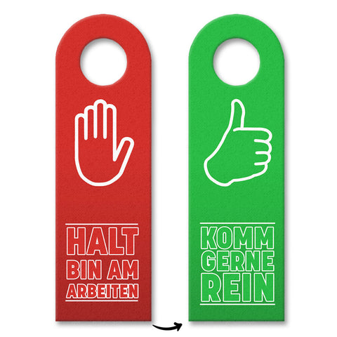 - Einzeln erhältlich oder als 3er- und 10er-Sparset. Aus hochwertigem Filz mit praktischem Loch für die Türklinke. Mit Sorgfalt in Handarbeit hergestellt in unserer Türhänger-Manufaktur in Deutschland.
