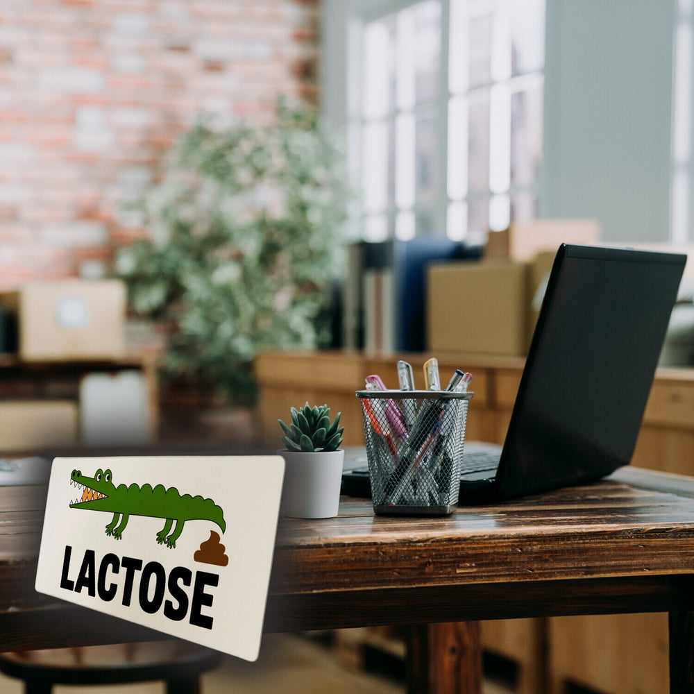 - Diese Schreibtischunterlage sorgt für Lacher: Ein frecher Alligator auf weißem Hintergrund ist bereit für ein "laktosefreies" Abenteuer! Mit einem witzigen Haufen und dem markanten Wort "LACTOSE" in großen, schwarzen Buchstaben ist dieser grüne Alligator das Highlight jedes Schreibtisches.