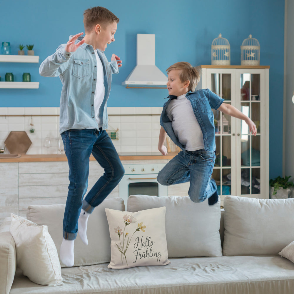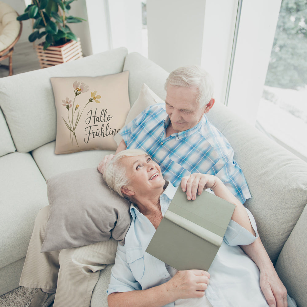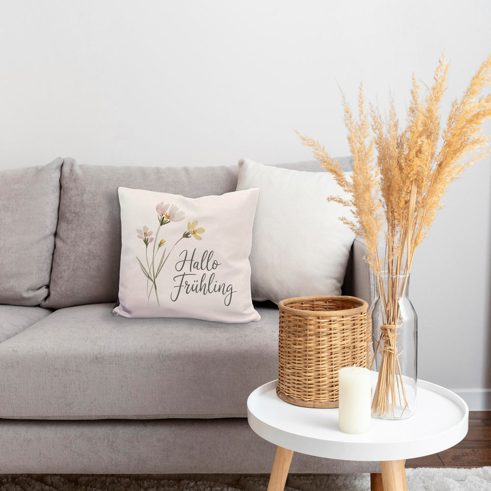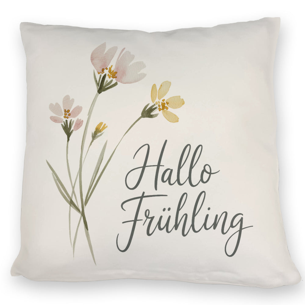 - 1x Aquarellblumen Hallo Frühling Kissen für Dekofans in der gewählten Ausführung