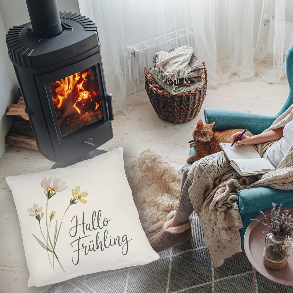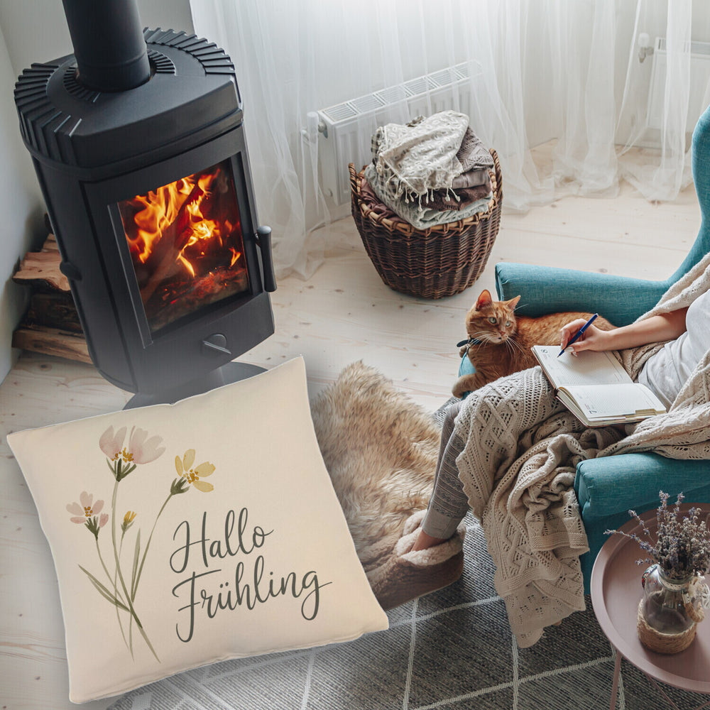 - Entdecken Sie unser bezauberndes Kissen mit einem minimalistischen Aquarellblumen-Design! Das Kissen zeigt zarte, rosa und gelbe Blüten auf weißem Hintergrund. Mittig prangt der handgeschriebene Schriftzug "Hallo Frühling". Diese ruhige Frühlingsästhetik mit klarer Typografie bringt Stil und Frische in Ihr Zuhause.