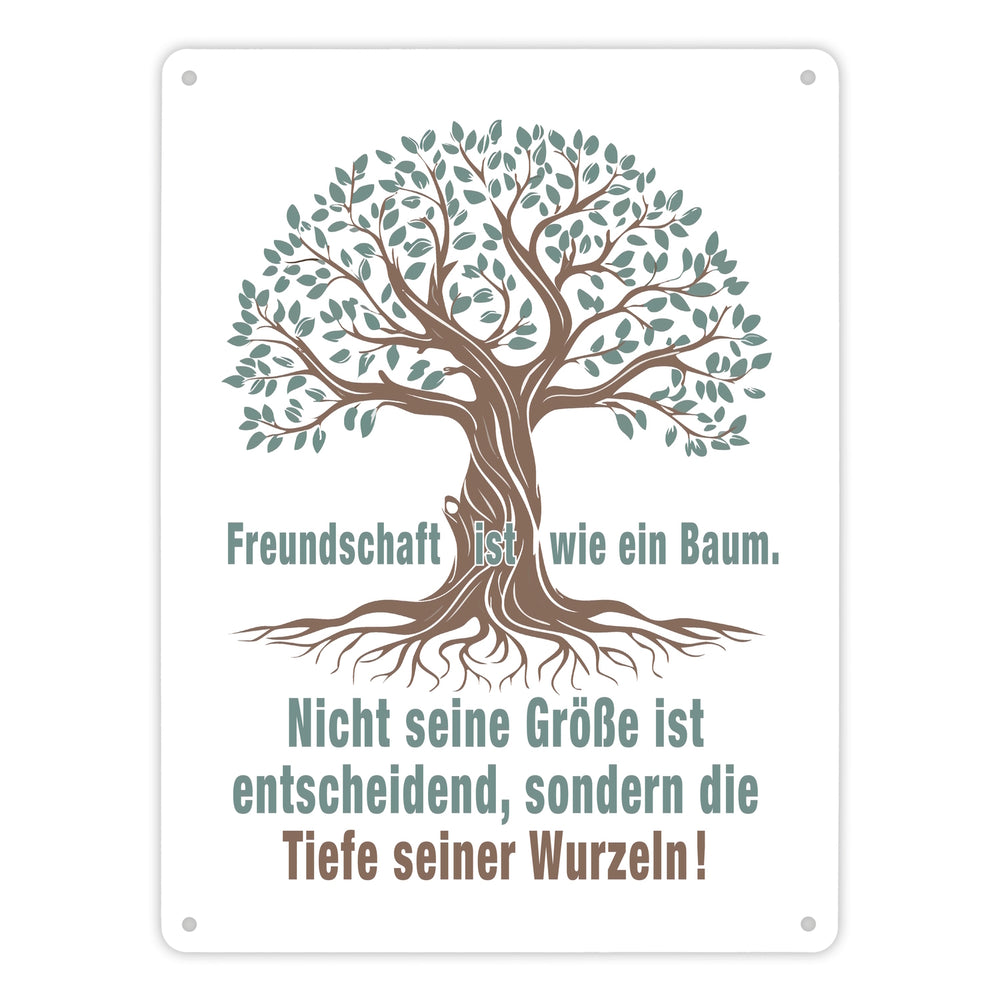 Baum mit Wurzeln Metallschild in 15x20 cm mit Spruch: Freundschaft ist tief verwurzelt