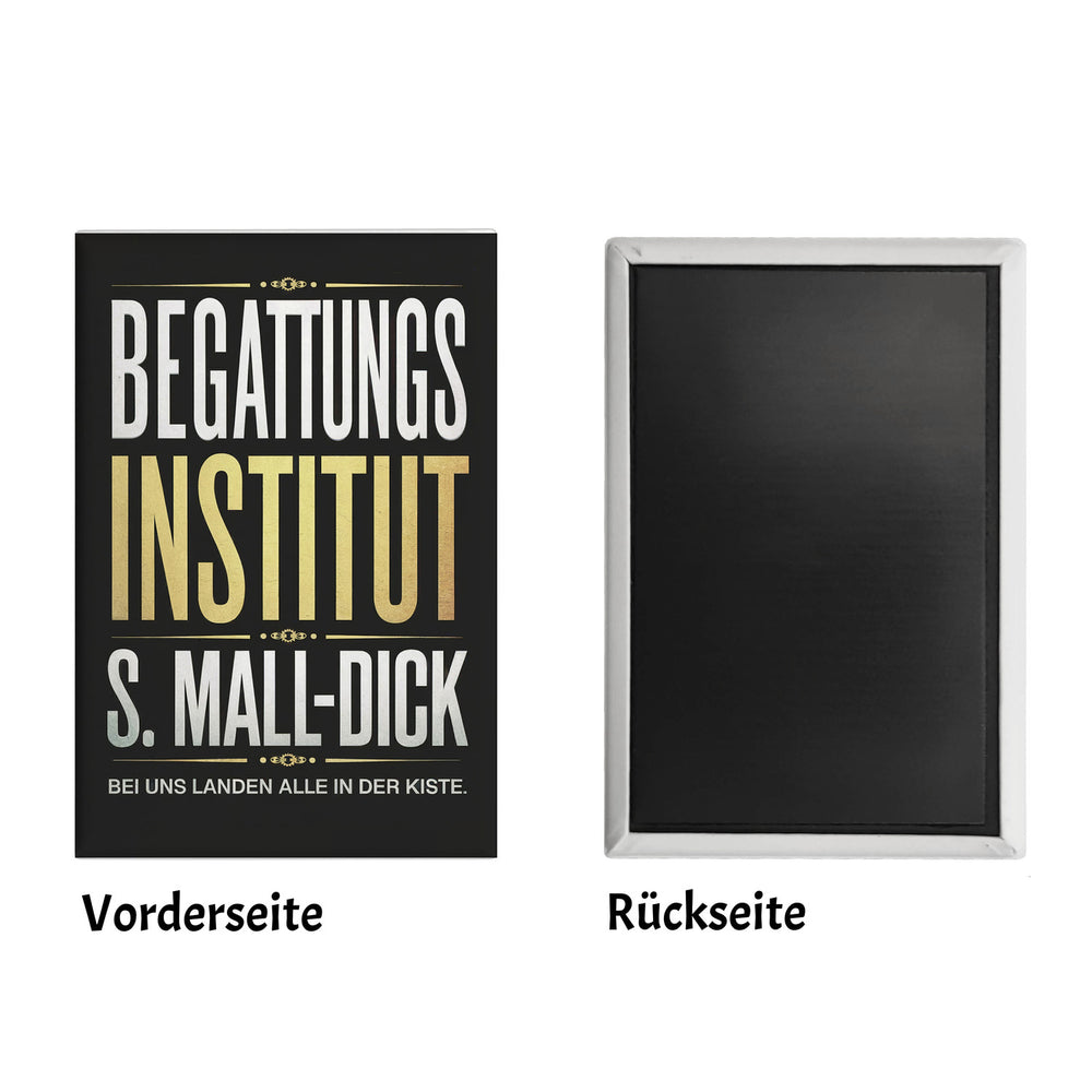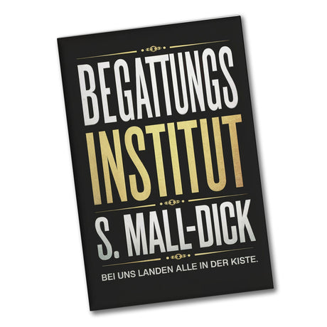 - Dieser Magnet ist nicht nur ein praktisches Accessoire, sondern auch ein Gesprächsthema! Die großen Buchstaben "BEGATTUNGSINSTITUT" und der Name des fiktiven Inhabers S. Mall-Dick sorgen für Schmunzler und überraschte Blicke. Das lustige Wortspiel, das an ein Bestattungsinstitut erinnert, ist ein echter Brüller!