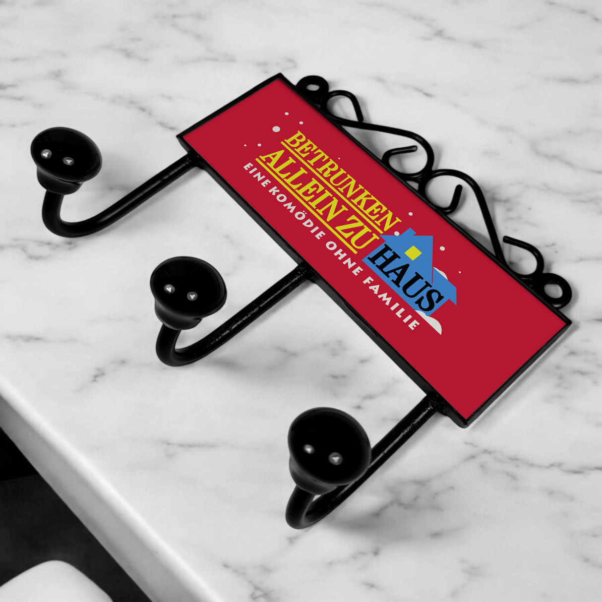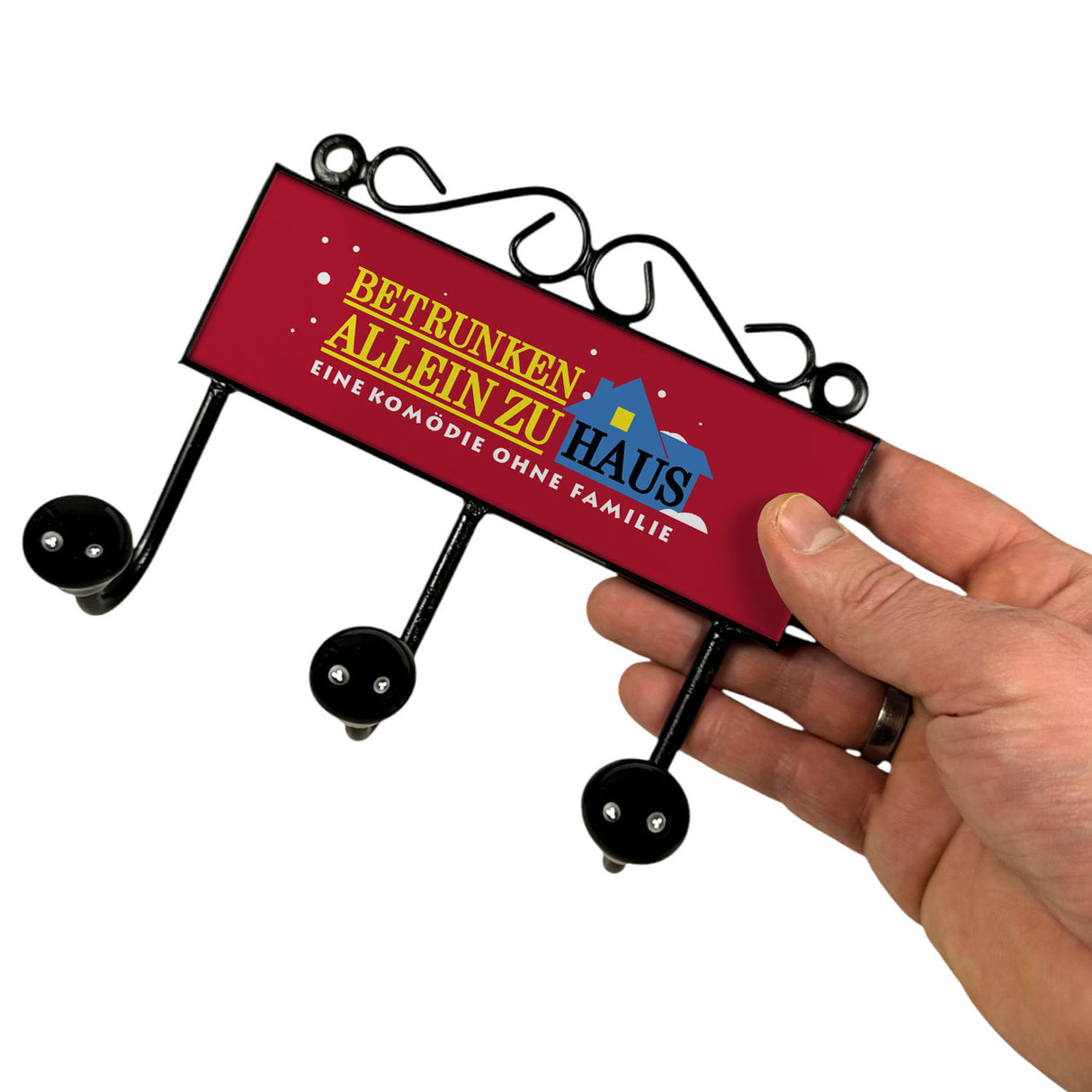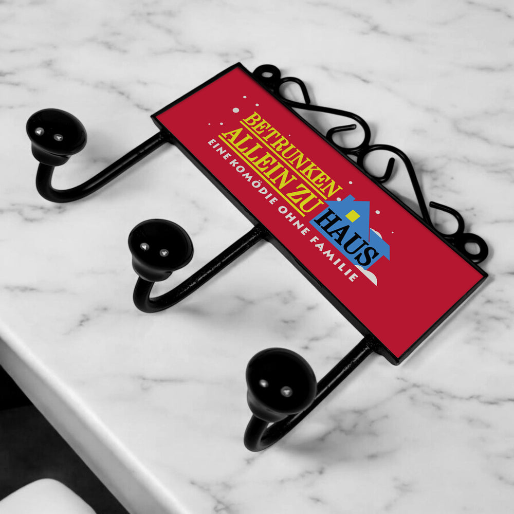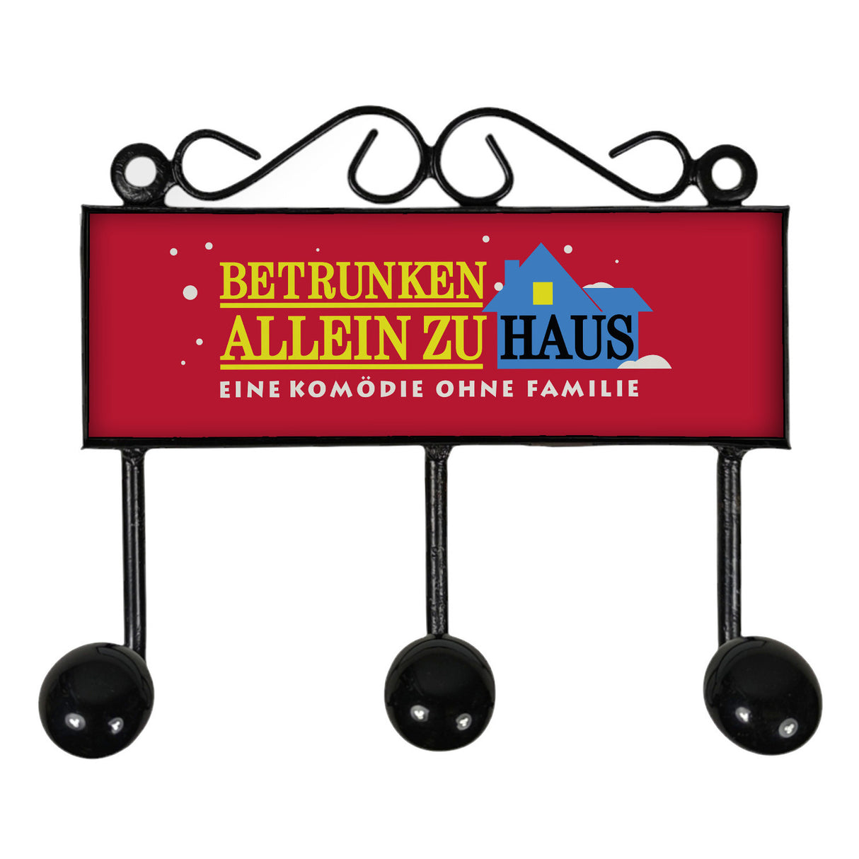 BETRUNKEN ALLEIN ZU HAUS Wortwitz Kleiderhaken Leiste mit 3 Haken