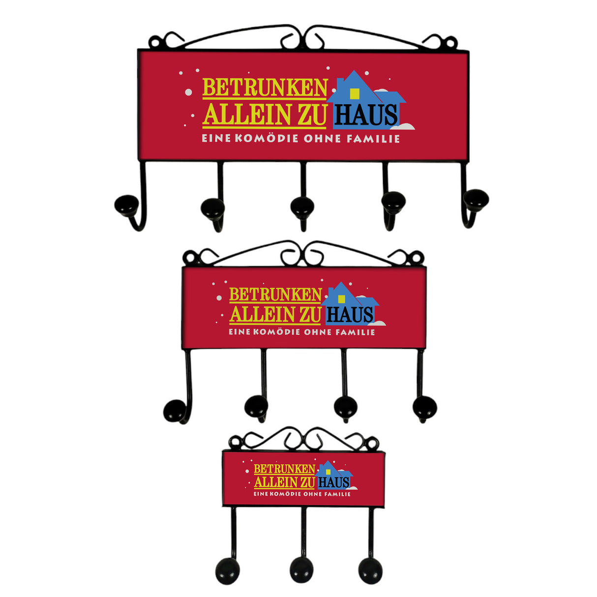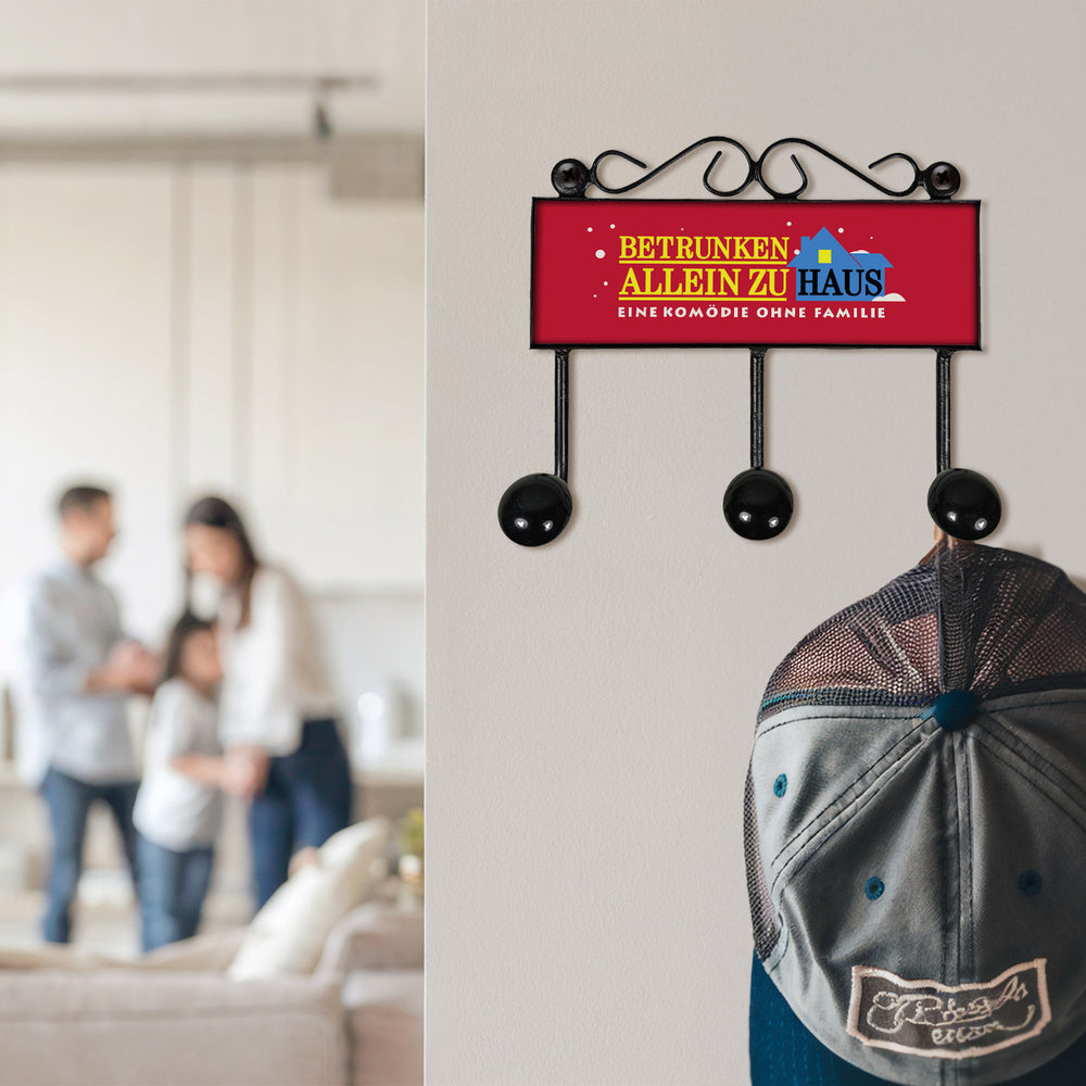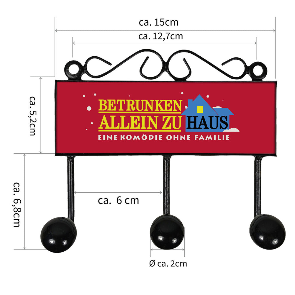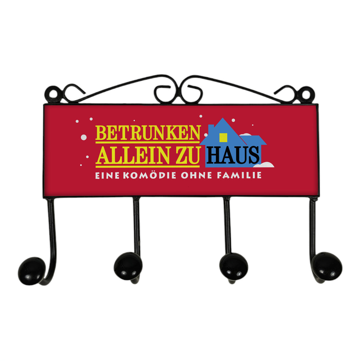 BETRUNKEN ALLEIN ZU HAUS Wortwitz Kleiderhaken Leiste mit 3 Haken