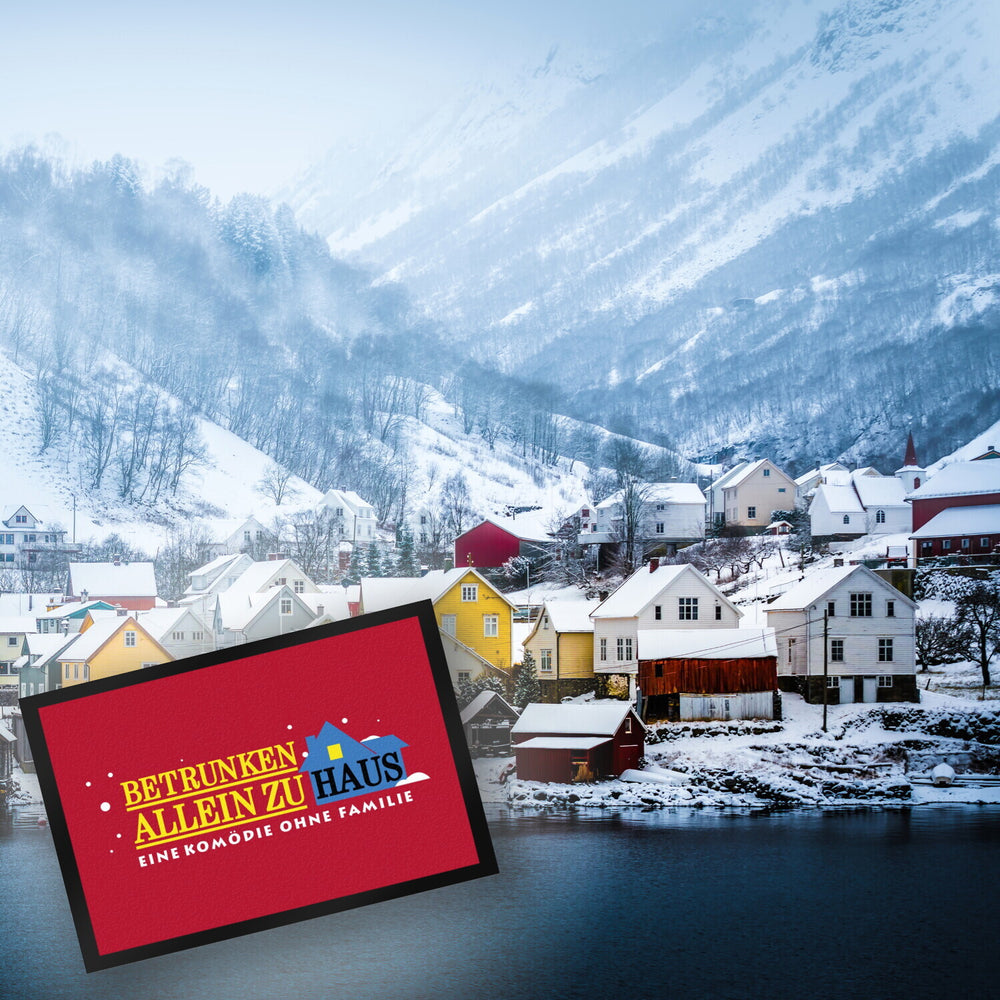 - Die lustige Fußmatte "Betrunken allein Zuhause" sticht mit ihrem lebendigen Rot hervor. Auf ihr prangt ein blaues Haus mit gelbem Fenster und schneebedecktem Dach. Gelbe Buchstaben verkünden den humorvollen Spruch, weiße Schneeflocken runden das winterliche Design ab. Perfekt für alle, die ein Lächeln aufs Gesicht zaubern möchten.