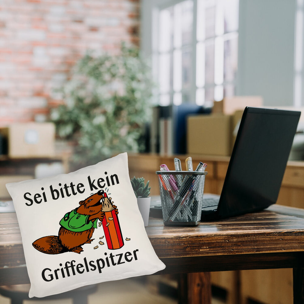 Biber Kissen mit Spruch: Sei kein Griffelspitzer