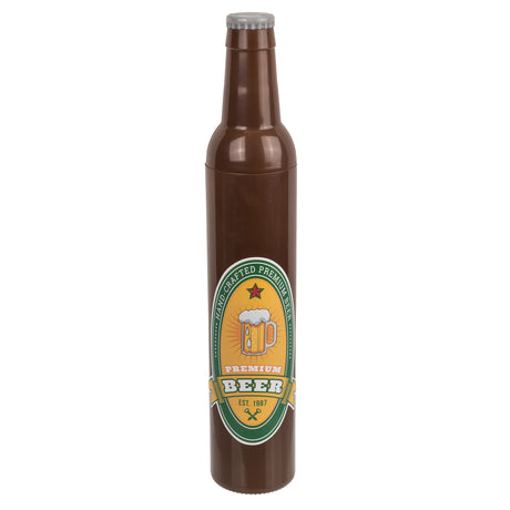 Der Bierflasche Regenschirm ist ein nützliches und originelles Accessoire für jeden Bierliebhaber. Der Schirm besitzt das Design einer braunen Flasche mit grauem Kronkorken und farbenfrohem Bieretikett auf der Vorderseite. Er bietet hervorragenden Schutz vor Regen und Sonne, obwohl er dank seines schlanken Designs leicht ist. Für alle, die Wert auf Stil legen, ist dieser Regenschirm das perfekte Geschenk! Er wird garantiert Freude bereiten! Nach dem Trocknen lässt sich der Schirm bequem und platzsparend im Flaschenkörper verstauen. Ein toller Begleiter an regnerischen Tagen!