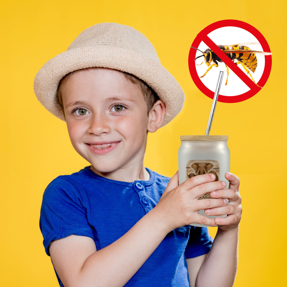 - 1x Big 5 Afrika Trinkglas mit Bambusdeckel mit Tiermotiven mit Bambusdeckel oder Henkel
