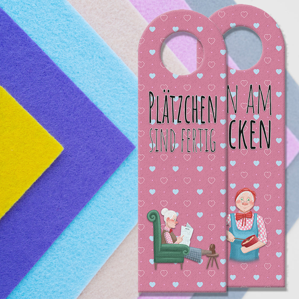 - Einzeln erhältlich oder als 3er- und 10er-Sparset. Aus hochwertigem Filz mit praktischem Loch für die Türklinke. Mit Sorgfalt in Handarbeit hergestellt in unserer Türhänger-Manufaktur in Deutschland.