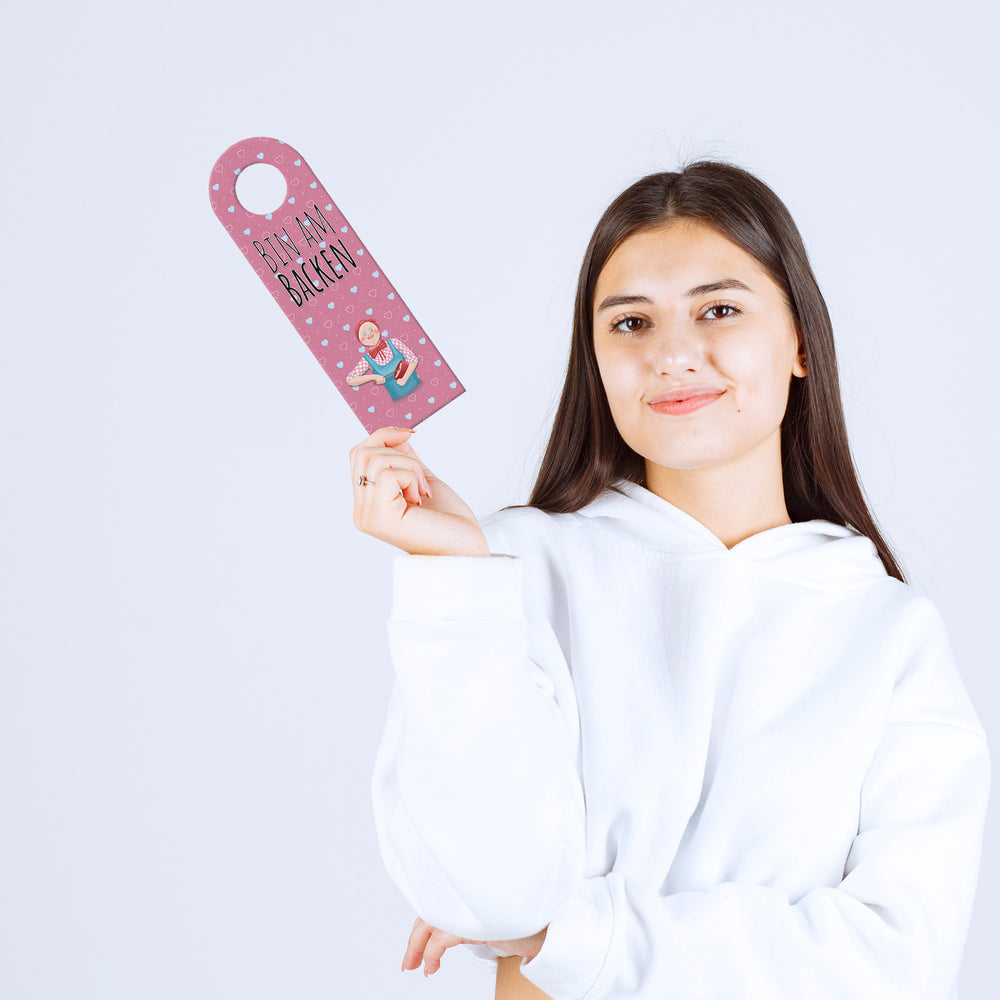 Wendeschild mit Kordel Das perfekte Gadget für alle, die gerne Backen oder viele Plätzchen zur Adventszeit backen. Mit diesem praktischen und schönen Wendeschild kannst du einfach zeigen, dass du gerade in der Küche beschäftigt bist.