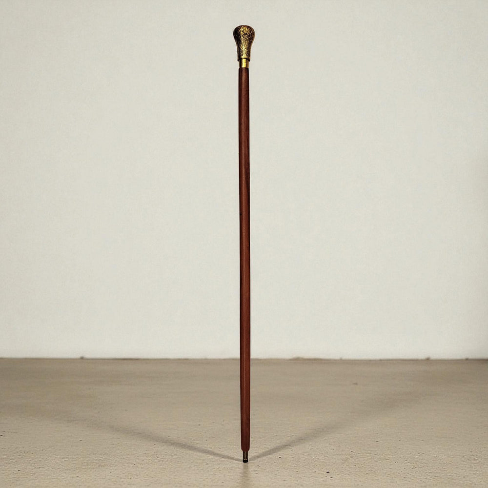 Blattornament Spazierstock aus Holz mit goldenem Griff aus Metall