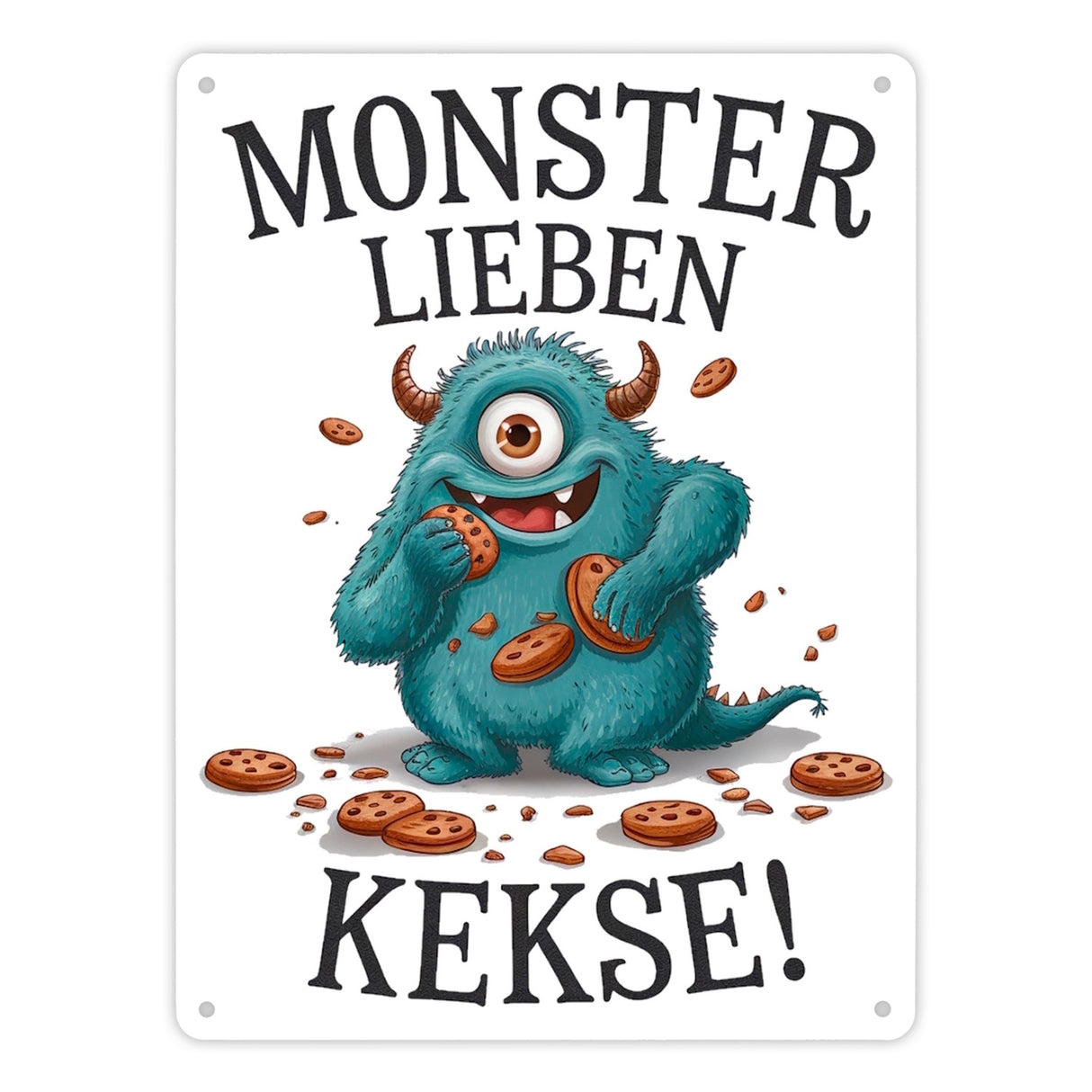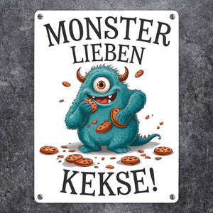 Blaues Monster mit Keks Metallschild in 15x20 cm Monster lieben Kekse