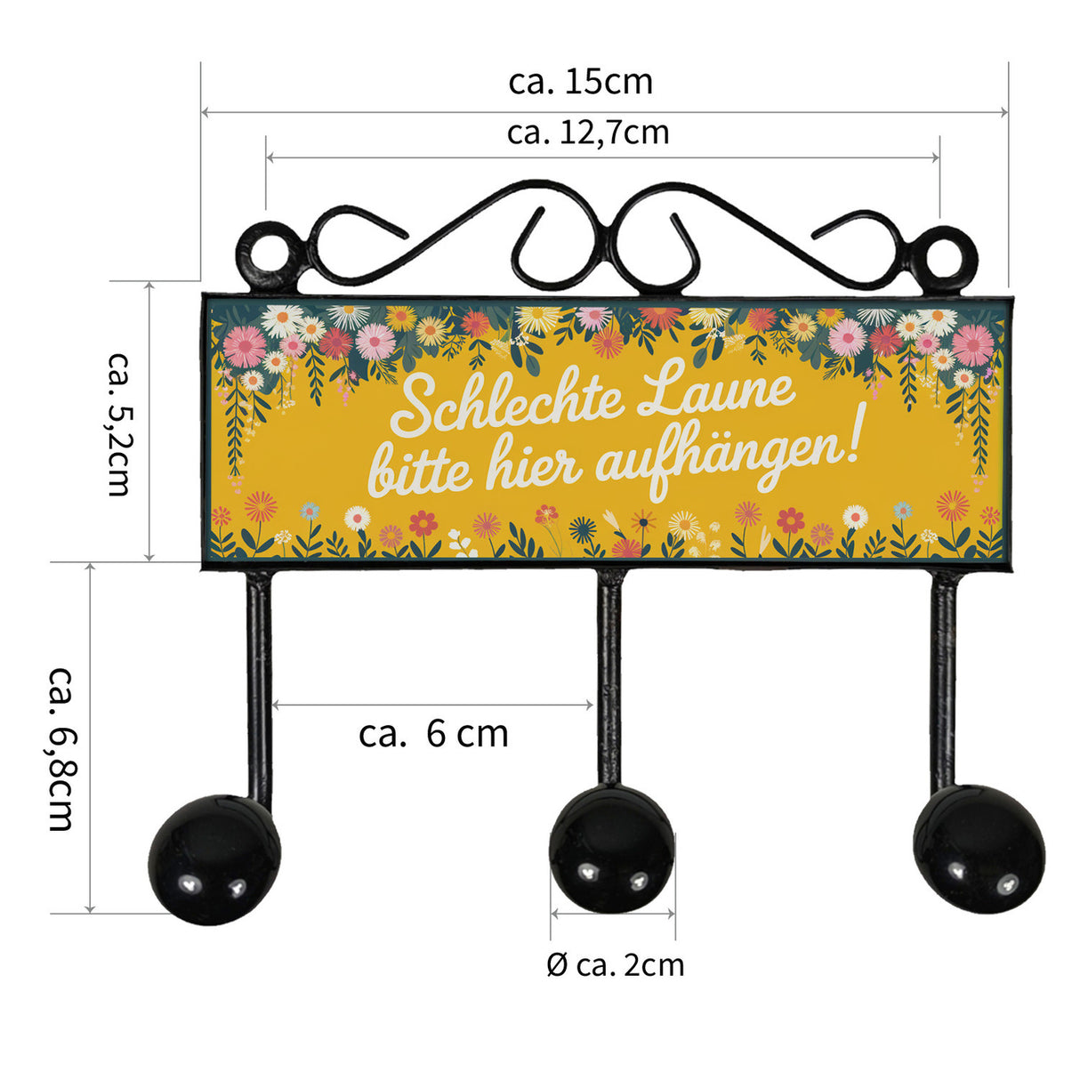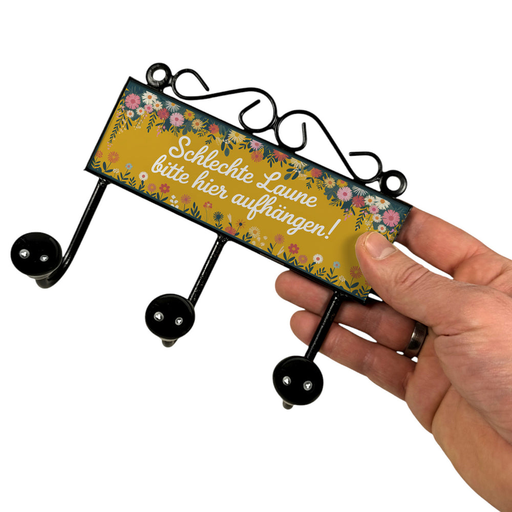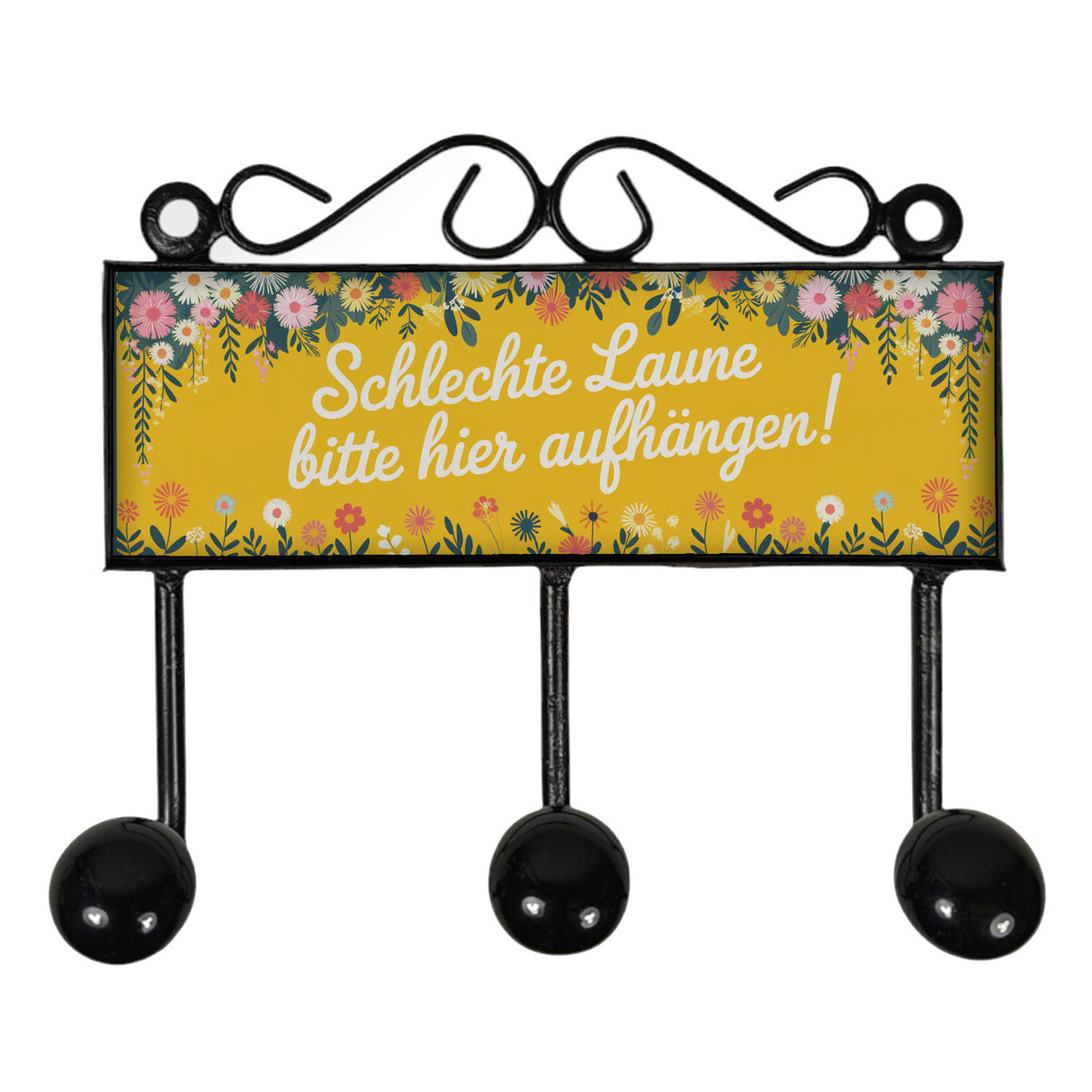 Blumen Kleiderhaken Leiste mit 3 Haken - Schlechte Laune hier aufhängen