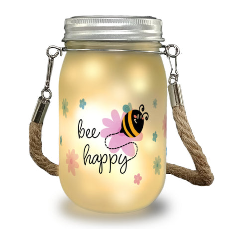 Bee happy Solarlicht mit niedlicher Biene und Blumen