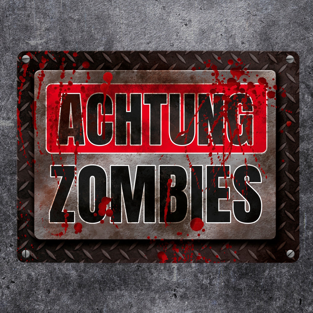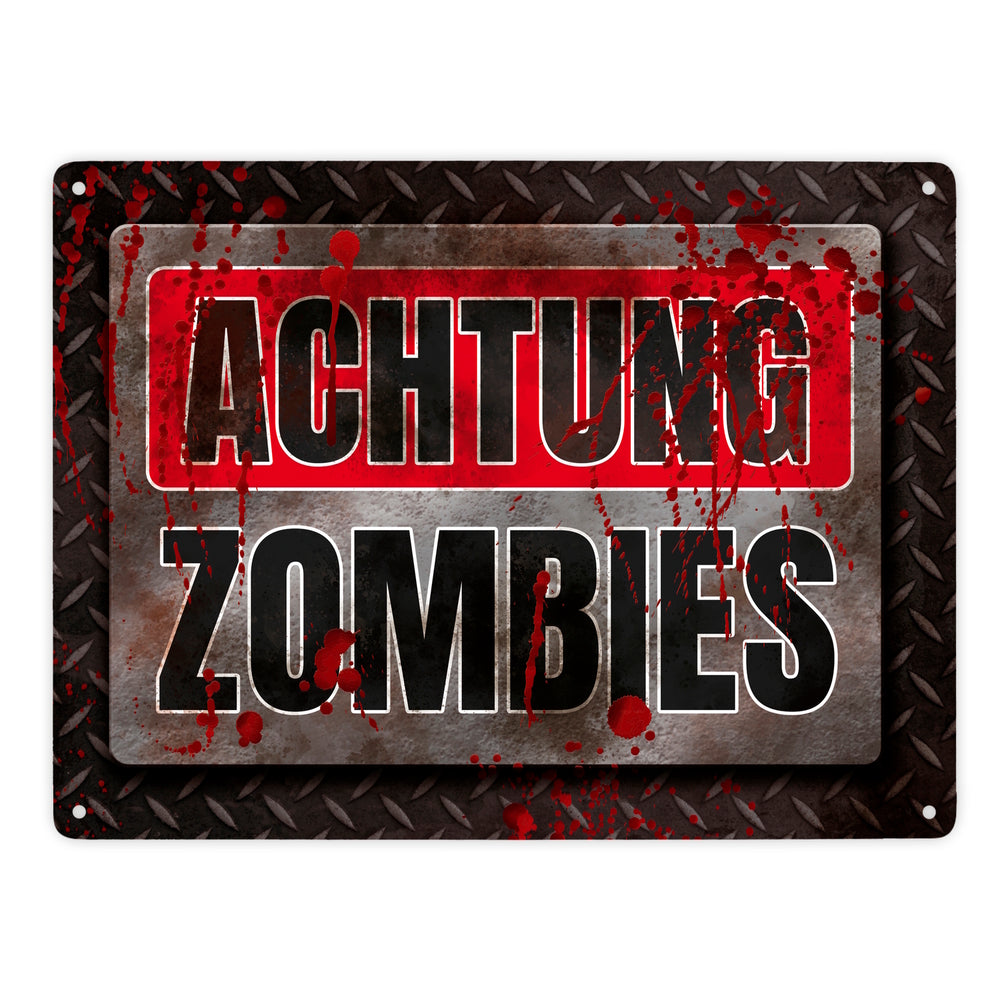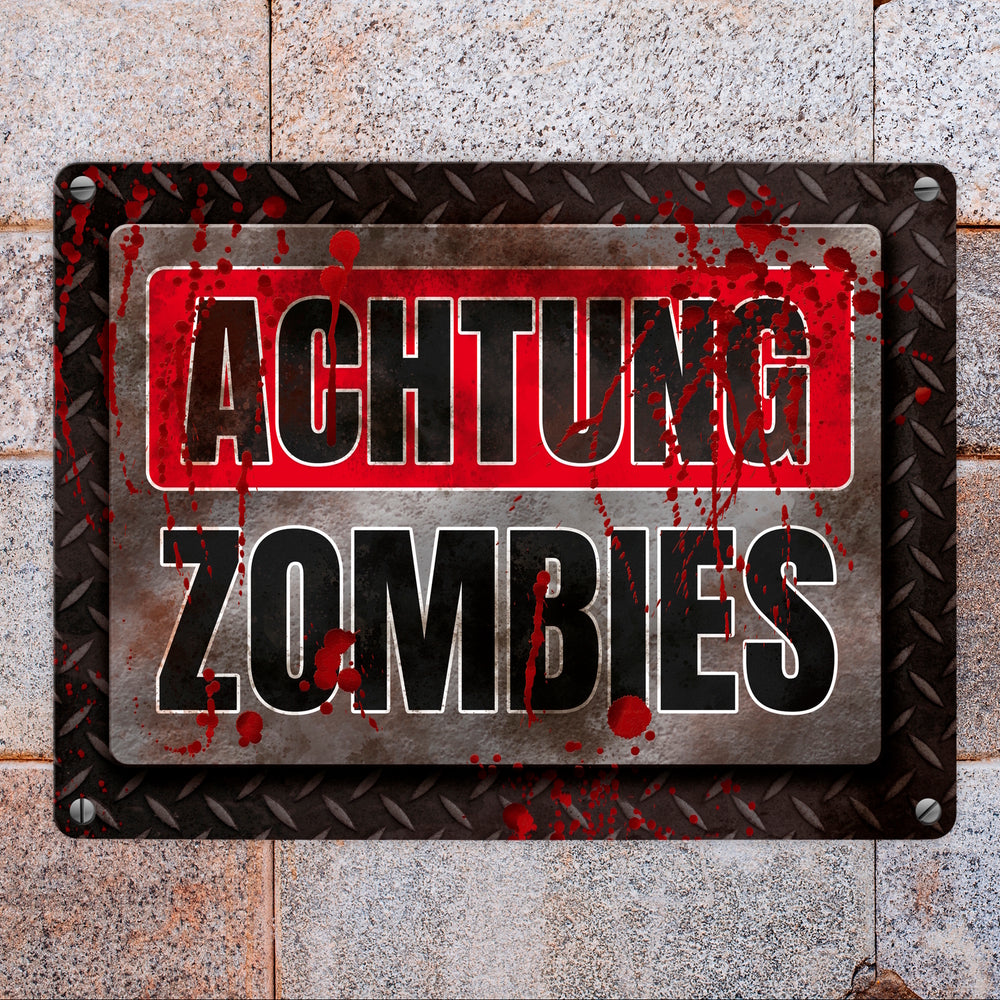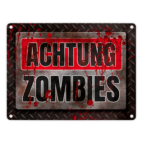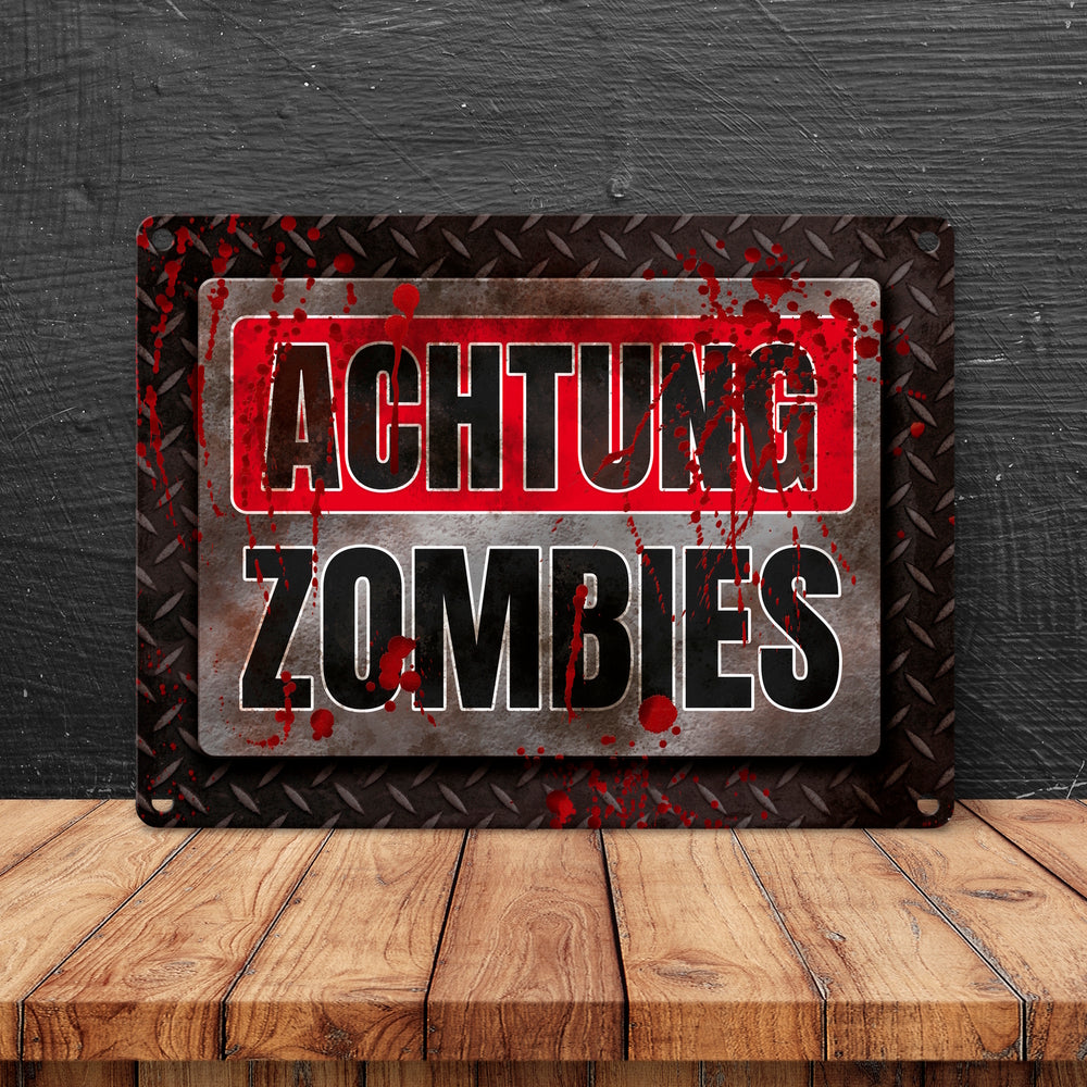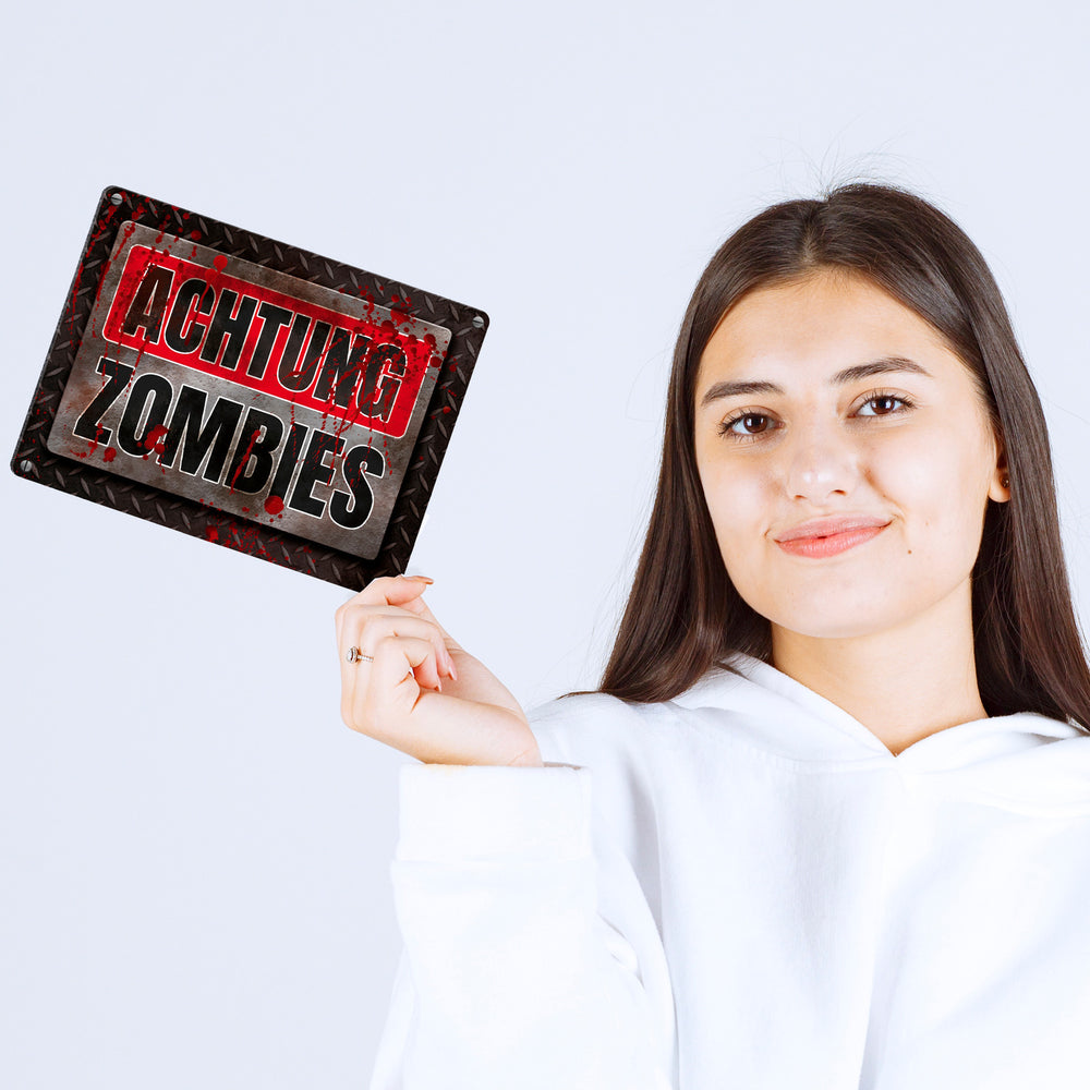 - 1x Blutiges Achtung Zombie Metallschild Halloween Zombie Angst Nacht Blut Kinder in der gewählten Größe