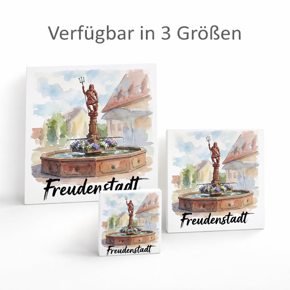 - 1x Brunnen Freudenstadt Holzbild in 10x10 cm zum Stellen oder Aufhängen mit Aquarellmotiv in der gewählten Größe