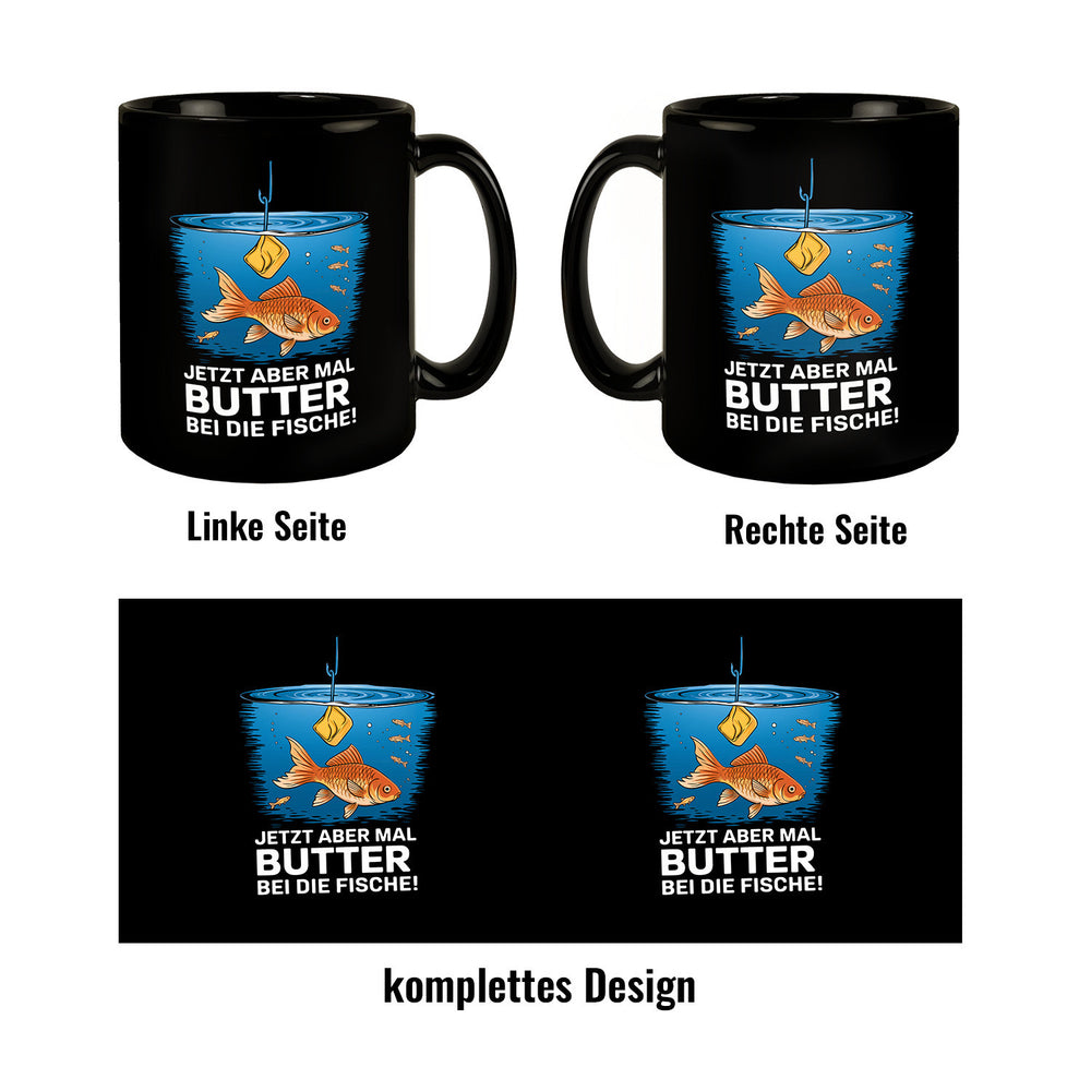 Tauche ab in den tiefen Ozean des täglichen Kaffeegenusses! Diese schwarze Tasse mit einem goldenen Fisch und einem Haken voller Butter bringt Schwung in deine morgendliche Routine. Perfekt für alle, die Humor und Kaffee lieben – und Fische, die Butter mö Hinweise: Fassungsvermögen: ca. 300ml