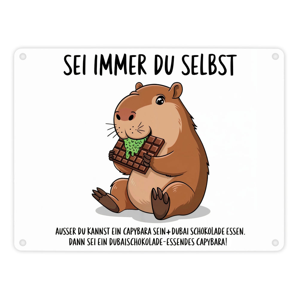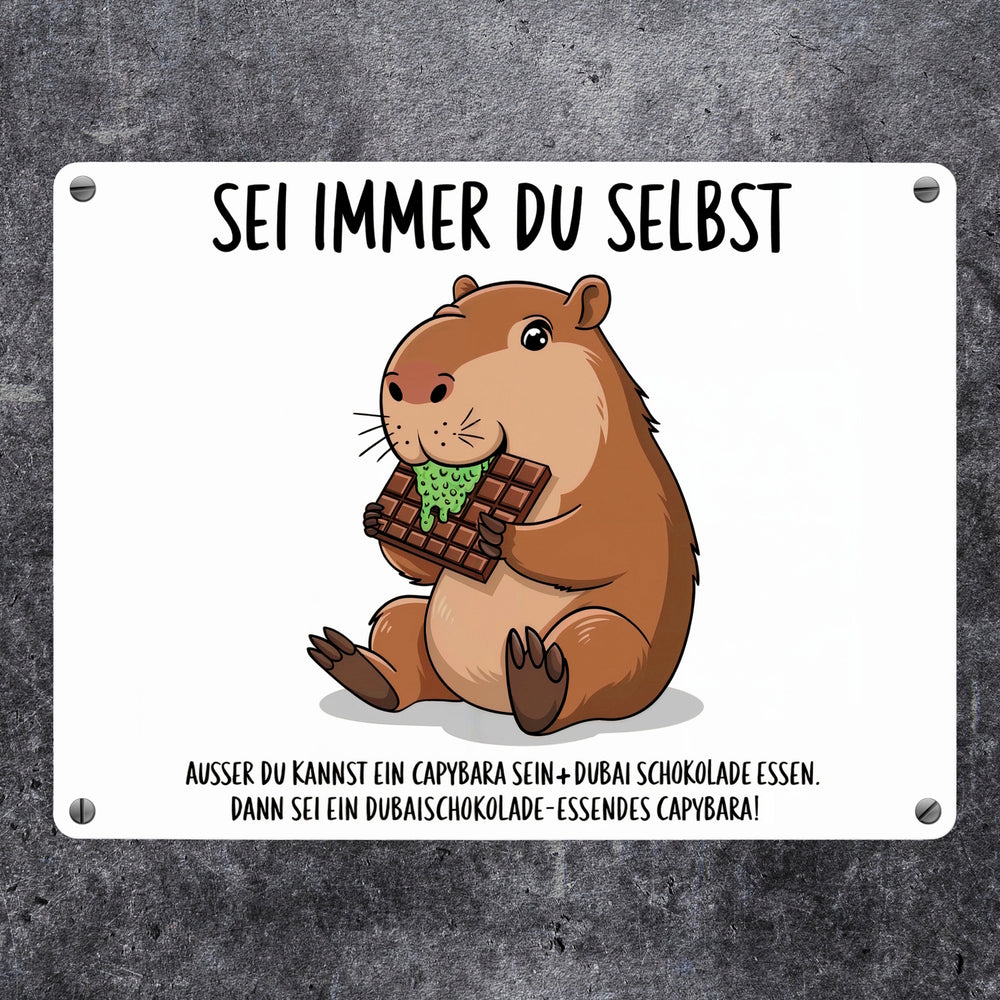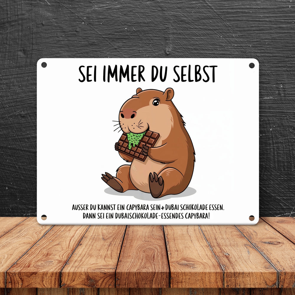Capybara frisst Dubai-Schokolade Metallschild in 15x20 cm - Sei immer du selbst - 15x20 cm ist auf Lager und wird versandt, sobald es wieder verfügbar ist