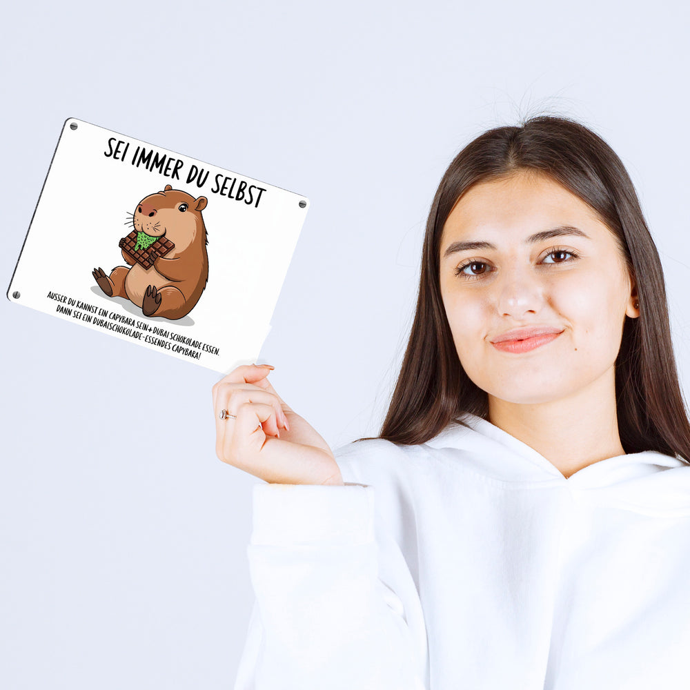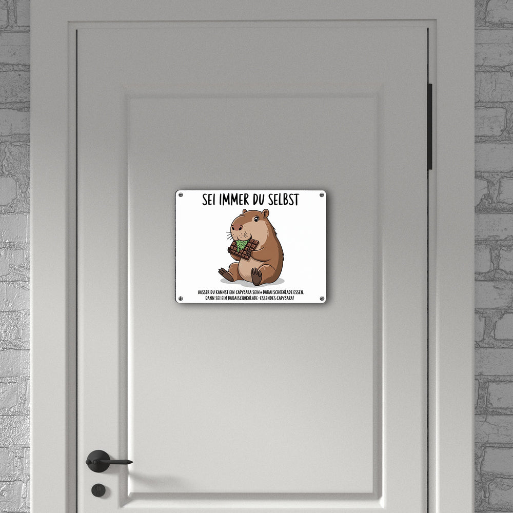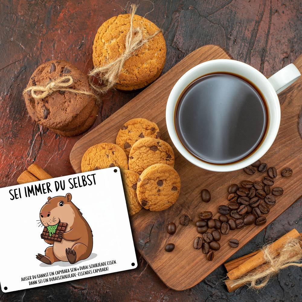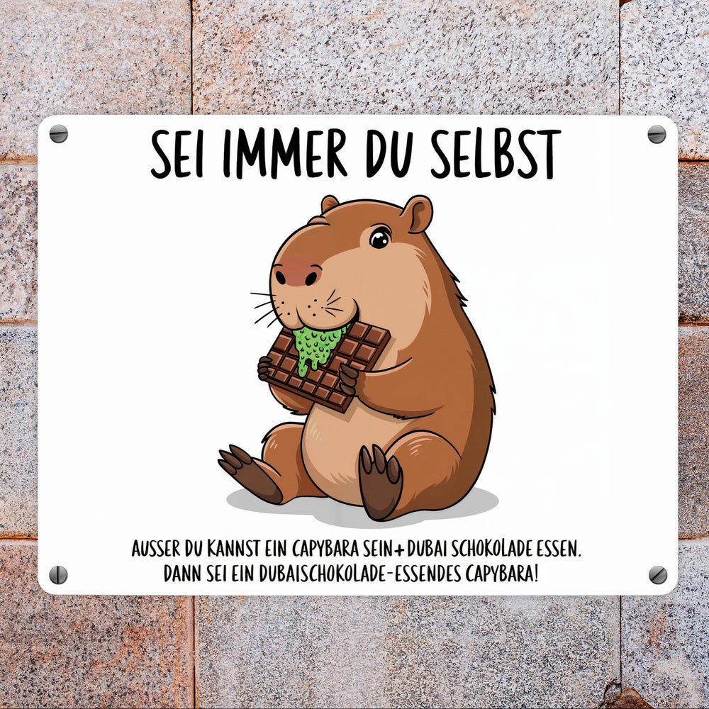 Capybara frisst Dubai-Schokolade Metallschild in 15x20 cm - Sei immer du selbst - 15x20 cm ist auf Lager und wird versandt, sobald es wieder verfügbar ist