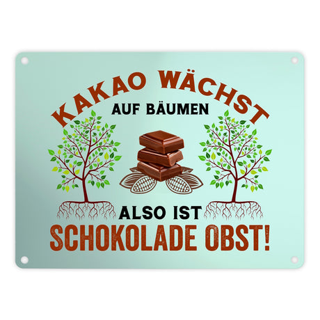 Kakao Metallschild in 15x20 cm mit Spruch Schokolade ist Obst
