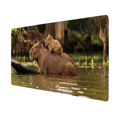 Capybara Mutter mit Baby Schreibtischunterlage 69x31cm XXL Mauspad für Naturfreunde