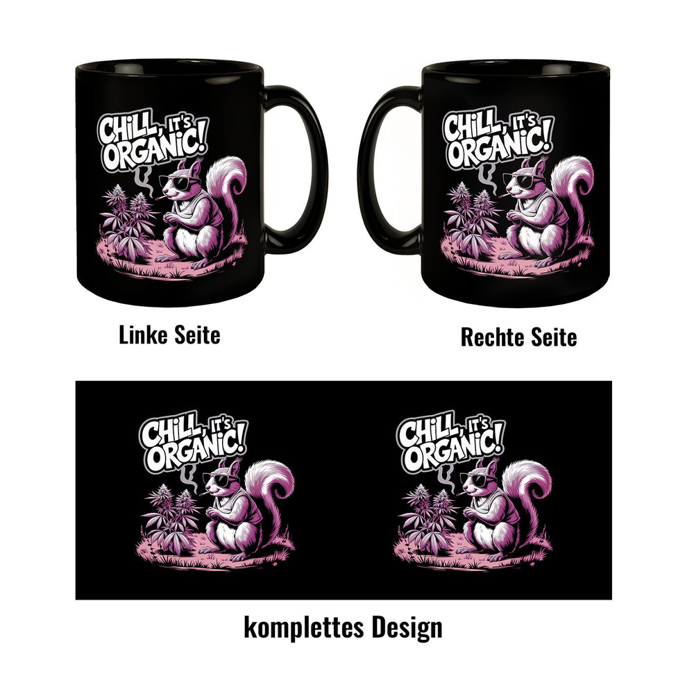 - Lieferumfang: 1x Chill, it's organic! Tasse mit bekifftem Eichhörnchen