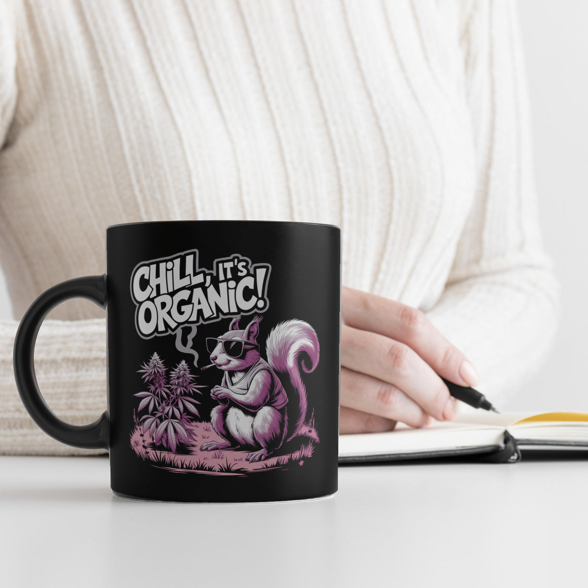 Chill, it's organic! Tasse mit bekifftem Eichhörnchen
