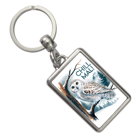 Chill mal Schlüsselanhänger Schneeeule auf Ast
