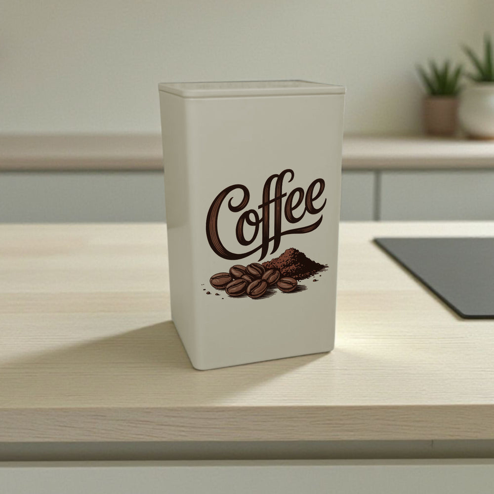 - Unsere Coffee Vorratsdose ist das perfekte Accessoire für Kaffeeliebhaber! Mit einer eleganten, handgeschriebenen Vintage-Typografie und kunstvollen Schnörkeln strahlt sie den Charme des frühen 20. Jahrhunderts aus. Verziert mit glänzenden Kaffeebohnen und feinem Kaffeepulver auf elfenbeinweißem Hintergrund, ist sie ein echter Hingucker in jeder Küche.