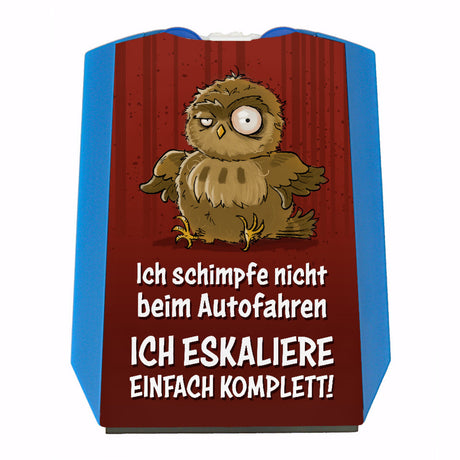 Eule Parkscheibe mit Spruch Eskalation statt Schimpfen beim Fahren