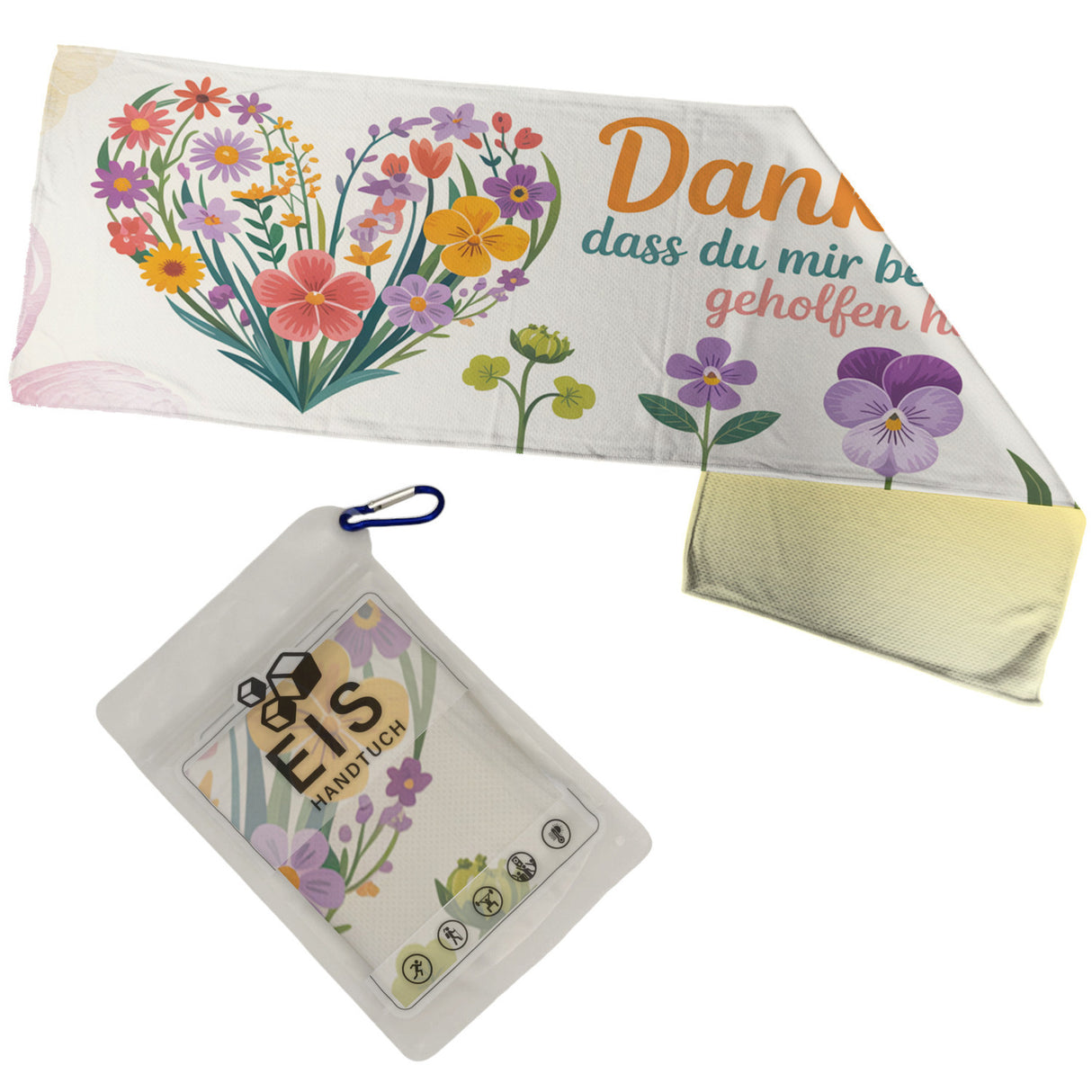 Danke Erzieher Eishandtuch mit Herz aus Wildblumen Dankes-Motiv