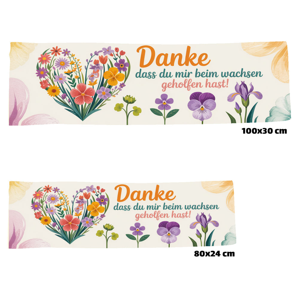 • 1x Danke Erzieher Eishandtuch mit Herz aus Wildblumen Dankes-Motiv in der gewählten Größe