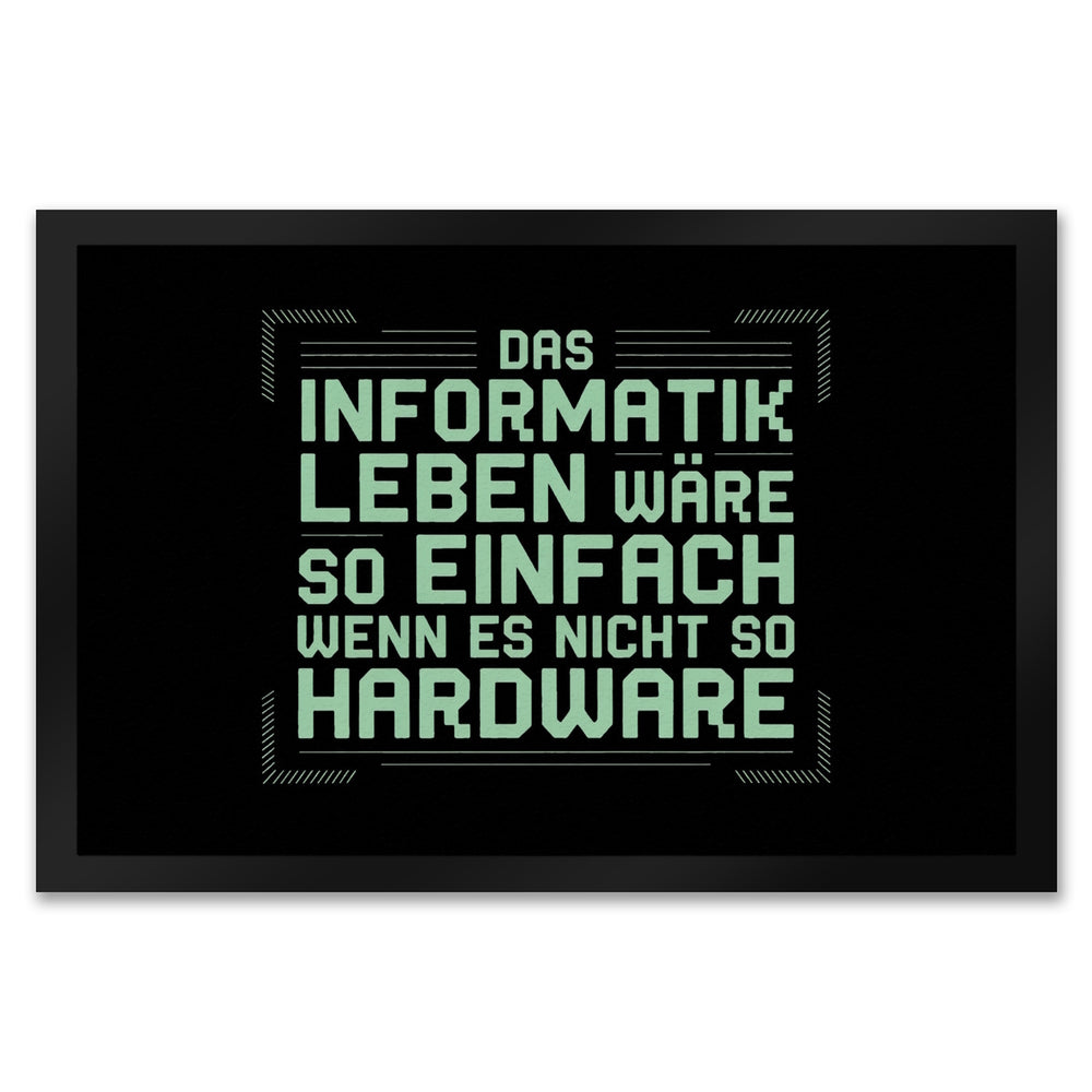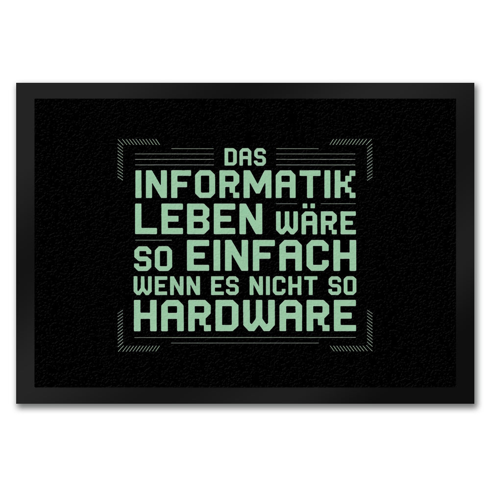 - Diese Fußmatte ist ein echter Hingucker für IT-Nerds! Mit ihrem Retro-Computerlook und dem witzigen Spruch "DAS INFORMATIK LEBEN WÄRE SO EINFACH WENN ES NICHT SO HARDWARE" in neon-grünen, leuchtenden Buchstaben bringt sie den Charme alter Computerzeiten in jeden Eingangsbereich.