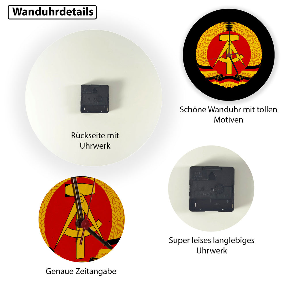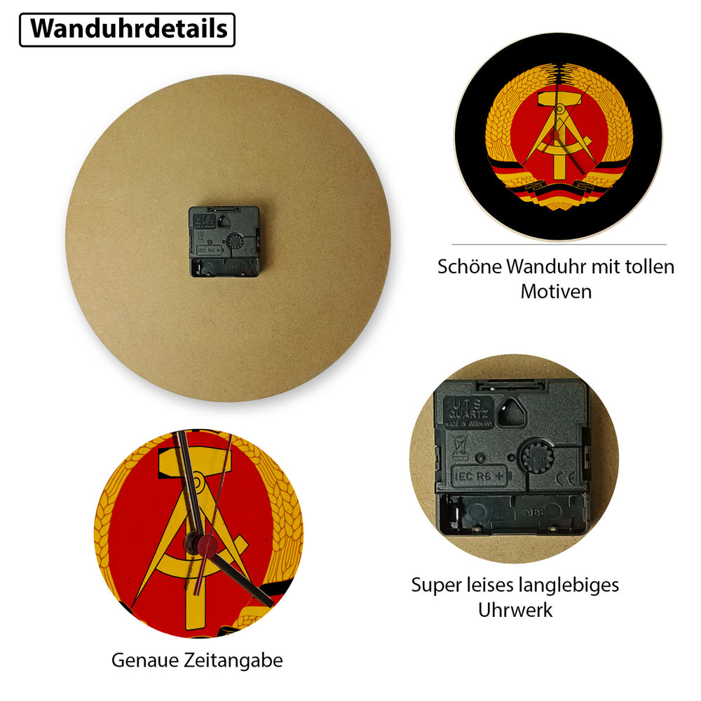 - 1x DDR Staatswappen Wanduhr für Ostalgie Fans in der gewählten Variante