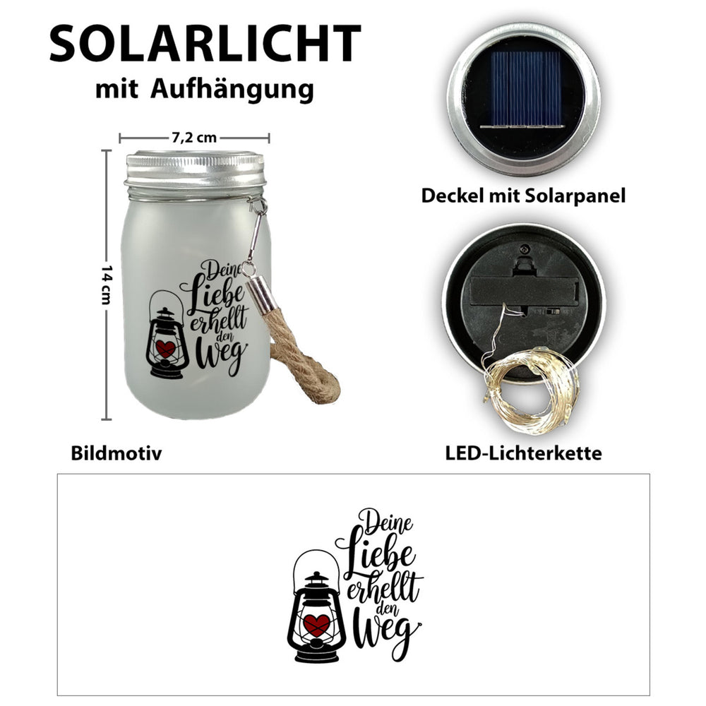 - Lieferumfang: 1x Deine Liebe erhellt den Weg - Laterne mit Herz Solarlicht