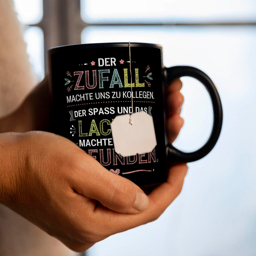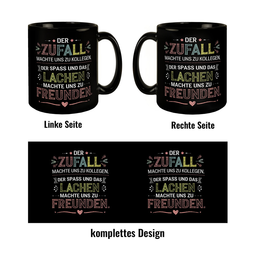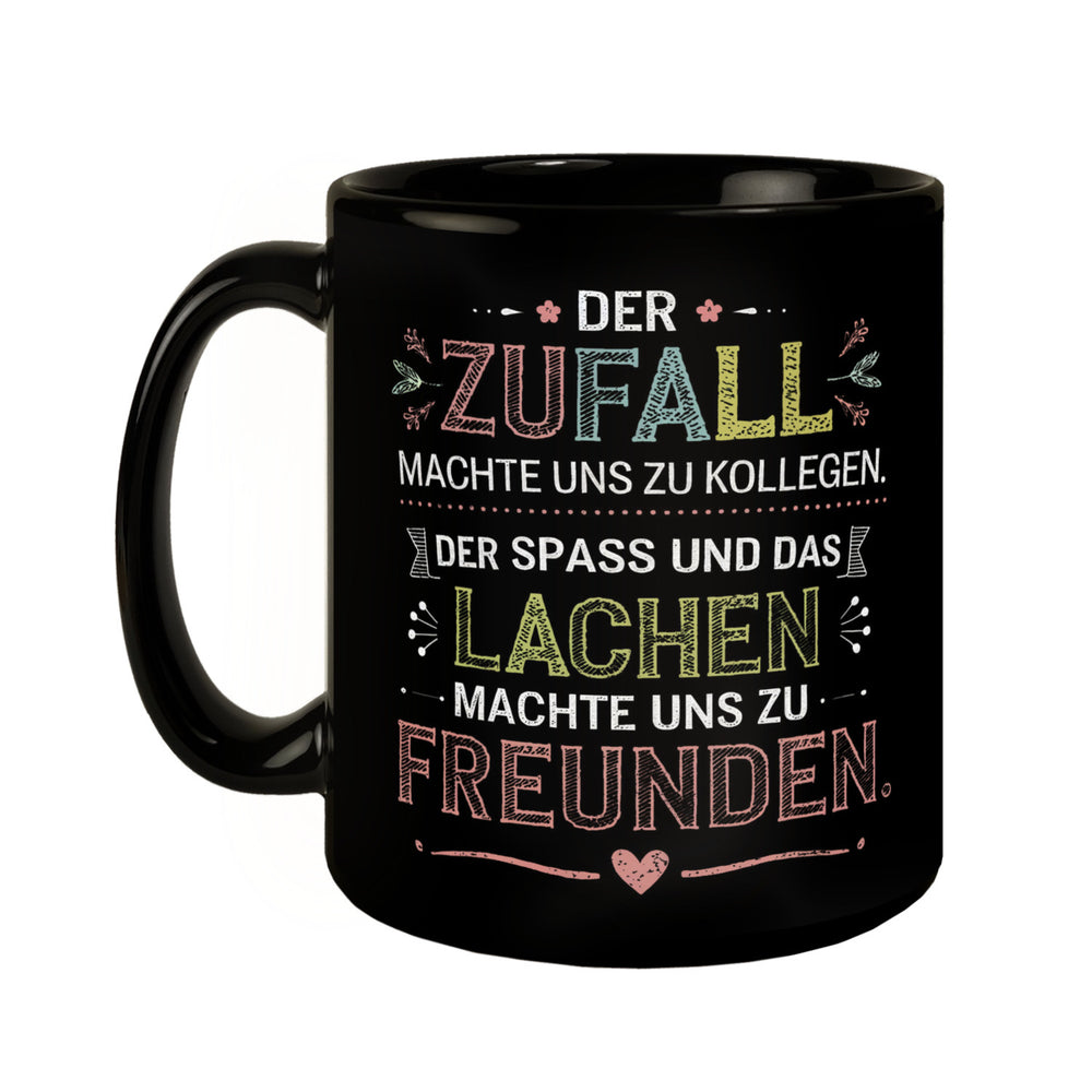 • Lieferumfang: 1x Der Zufall machte uns zu Kollegen Der Spass und das Lachen machte uns zu Freunden Tasse