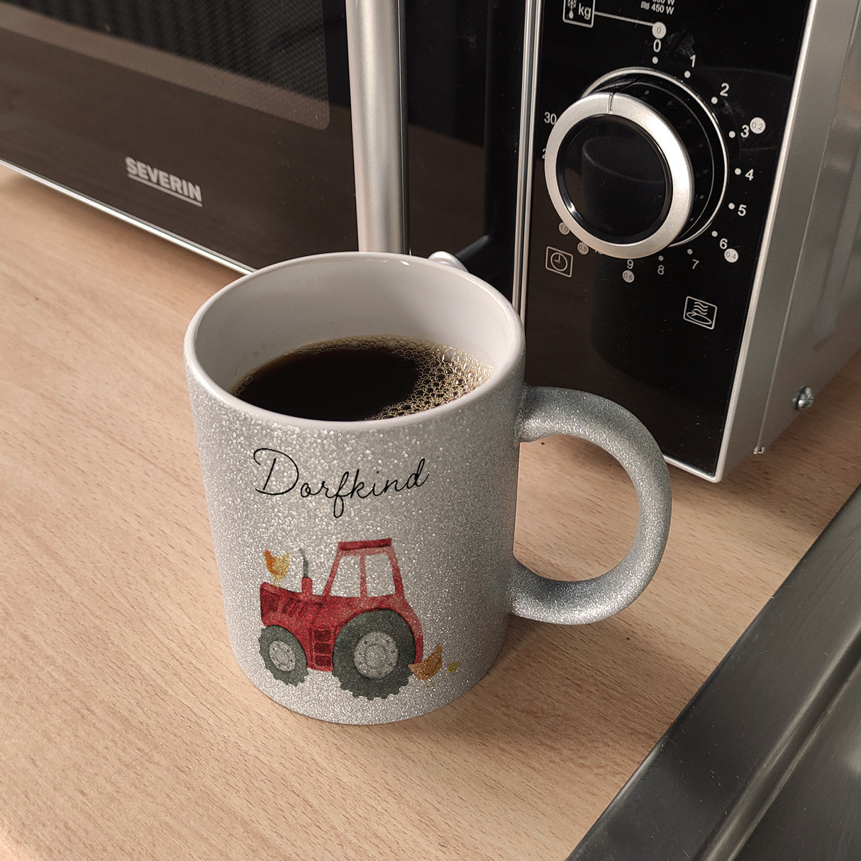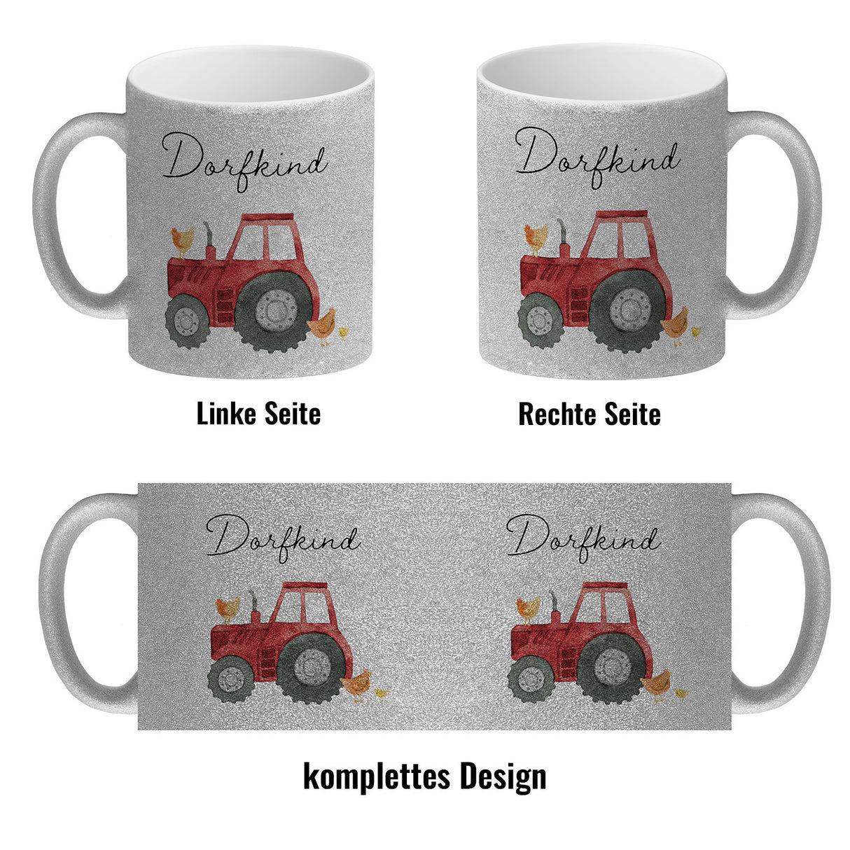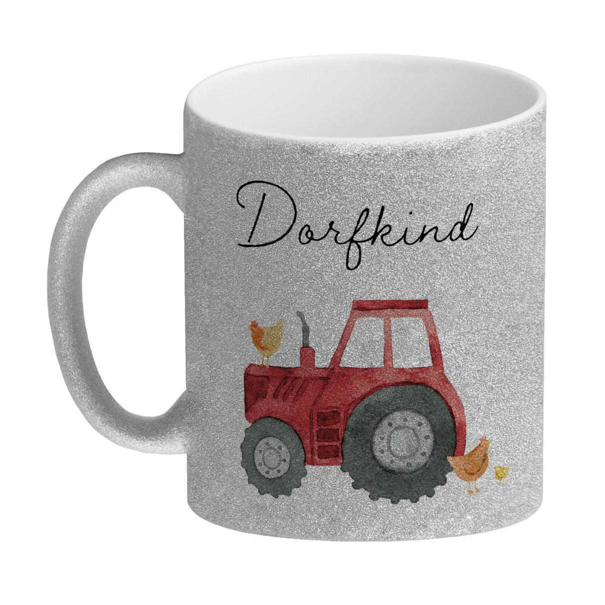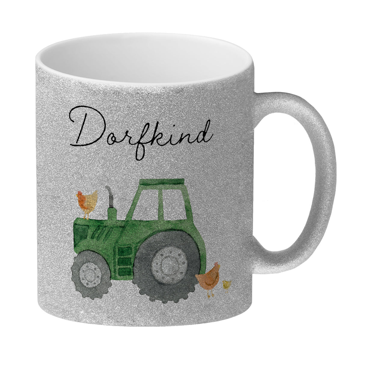 Stell dir vor, du sitzt auf deinem Traktor, der Morgen dämmert und der Duft frischen Kaffees strömt aus deinem Becher – nicht irgendeinem Becher, sondern dem Dorfkind grüner Traktor Kaffeebecher . Dieser robuste Gefährte ist mehr als nur eine Tasse, es ist eine Ode an das Landleben, ein High-Five mit den Händen voller Erde. Hier vereint sich die Liebe zum Dorf mit der Passion für motorisierte Ungetüme auf vier Rädern und einem lustigen Hühnervolk, das dir aus Aquarellblicken kichernd zuprosten mag.Auch wenn du in der Stadt festsitzt, bringt dieser Becher das Feld zu dir. Zeige allen Kollegen, dass deine Wurzeln dort sind, wo man noch echtes Lebenswerk schafft – auf dem Land! Die vielfältigen Ausführungen garantieren, dass auch du deinen perfekten Landwirtschaftsbuddy findest: klassisch weiß, farbig akzentuiert oder als exklusive Silberedition, für den besonderen Glanz im Stall oder auf dem Trecker.Schenke mit dem Dorfkind Kaffeebecher ein Stück Heimat, das morgendliche Routine in ein heiteres Traktor-Abenteuer verwandelt. Perfekt für Geburtstage, Festtage oder als Herzenswärmer zwischendurch. Denn wo Dorfkind draufsteht, da steckt Liebe, Freiheit und ein Schuss gute Laune drin – und das alles vor dem ersten Gähnen des Tages!