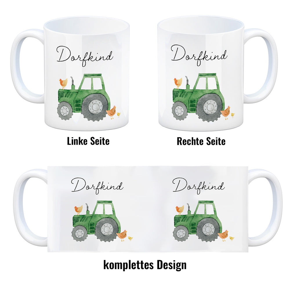 • 1x Dorfkind grüner Traktor Kaffeebecher in der gewählten Ausführung