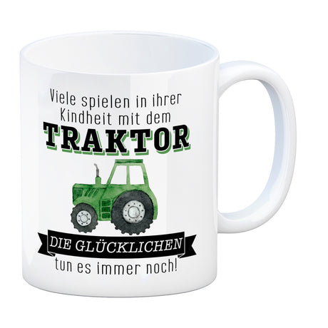 Traktor Kaffeebecher mit Spruch Kindheitsträume - Für immer Traktor fahren