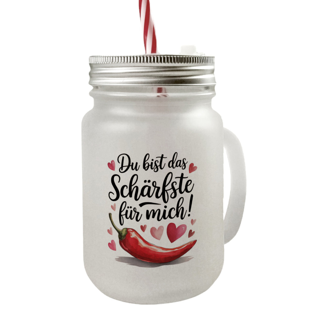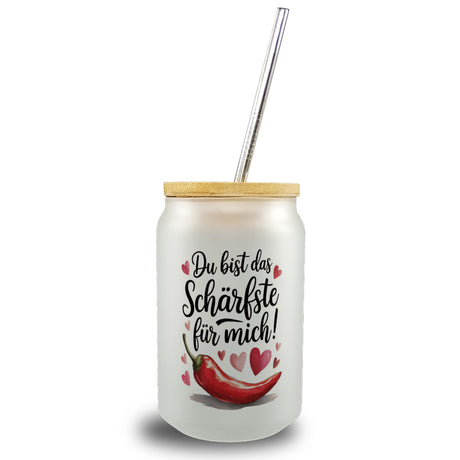 - 1x Du bist das Schärfste für mich Rote Chili mit Herzen Trinkglas mit Bambusdeckel mit Bambusdeckel oder Henkel