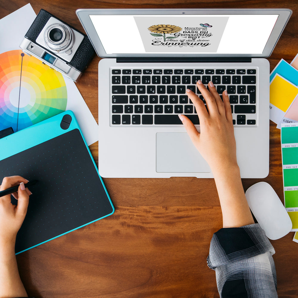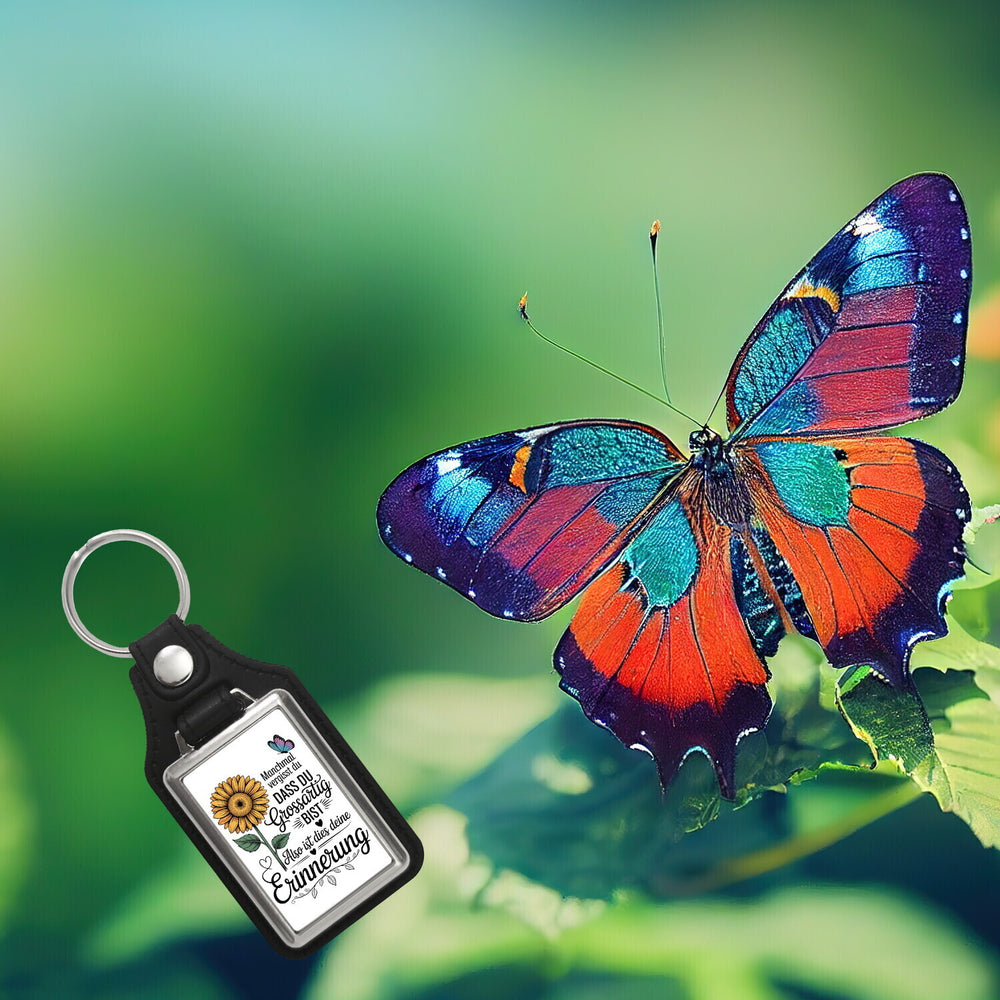 Der Du bist großartig Schlüsselanhänger mit Sonnenblume ist dein perfekter Begleiter für jeden Tag. Dieses charmante Accessoire vereint Farbe, Freude und Motivation in einer handlichen Gestalt. Besonders an trüben Tagen, wenn dir alles weniger rosig erscheint, strahlt der Anhänger in knalligen Gelb- und Orangetönen und zaubert dir selbst in der stressigsten Situation ein Lächeln ins Gesicht. Das wunderschöne Sonnenblumen-Design, ergänzt durch einen filigranen Schmetterling in Blau- und Lilatönen, zieht alle Blicke auf sich. Und während die Farben deine Stimmung heben, erinnert dich der aufgedruckte Spruch: Manchmal vergisst du, dass du großartig bist, also ist dies deine Erinnerung, daran, dass du jeden Tagesanbruch mit Bravour meisterst.Verfügbar in verschiedenen Ausführungen – von der Standardvariante bis hin zur exquisiten Kunstleder-Version – bieten alle Modelle Qualität made in Germany. Zusätzlich sorgt der stabile Metall-Schlüsselring dafür, dass du deine Schlüssel nie wieder suchst.Dieser Schlüsselanhänger ist ein ideales Geschenk für jeden Anlass – sei es ein Geburtstag oder einfach als freundliche Geste. Ein wundervolles Accessoire, das nicht nur nützlich, sondern auch eine tägliche Motivationsquelle ist. Mach Schluss mit tristen Schlüsselanhängern und bring Sonnenstrahlen in den Alltag deiner Liebsten!