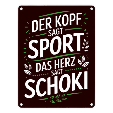 Der Kopf sagt Sport das Herz sagt Schoki Metallschild in 15x20 cm