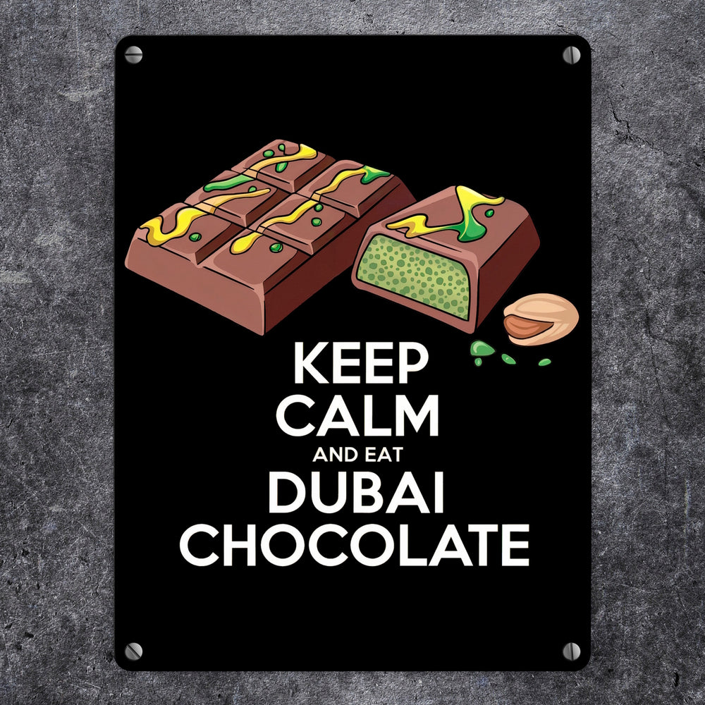 - 1x Dubai Schokolade Metallschild in 15x20 cm - Keep Calm and eat Dubai Chocolate in der gewählten Größe